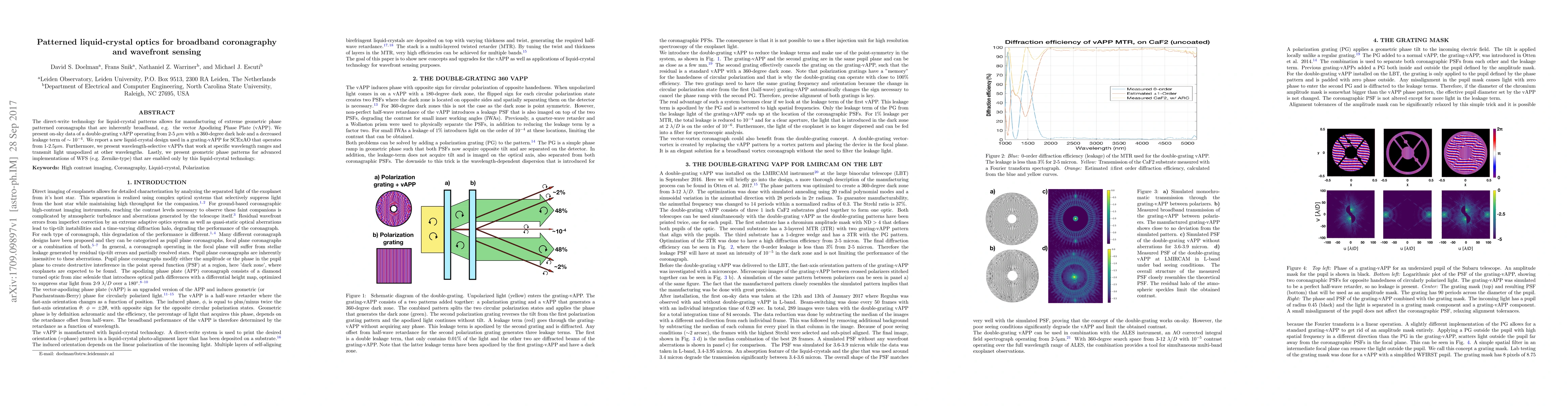 The direct-write technology for liquid-crystal patterns allows for manufacturing of extreme geometric phase patterned coronagraphs that are inherently broadband, e.g. the vector Apodizing Phase Plate (vAPP). We present on-sky data of a double-grating vAPP operating from 2-5 $\mu m$ with a 360-degree dark hole and a decreased leakage term of $\sim 10^{-4}$. We report a new liquid-crystal design used in a grating-vAPP for SCExAO that operates from 1-2.5$\mu m$. Furthermore, we present wavelength-selective vAPPs that work at specific wavelength ranges and transmit light unapodized at other wavelengths. Lastly, we present geometric phase patterns for advanced implementations of WFS (e.g. Zernike-type) that are enabled only by this liquid-crystal technology.