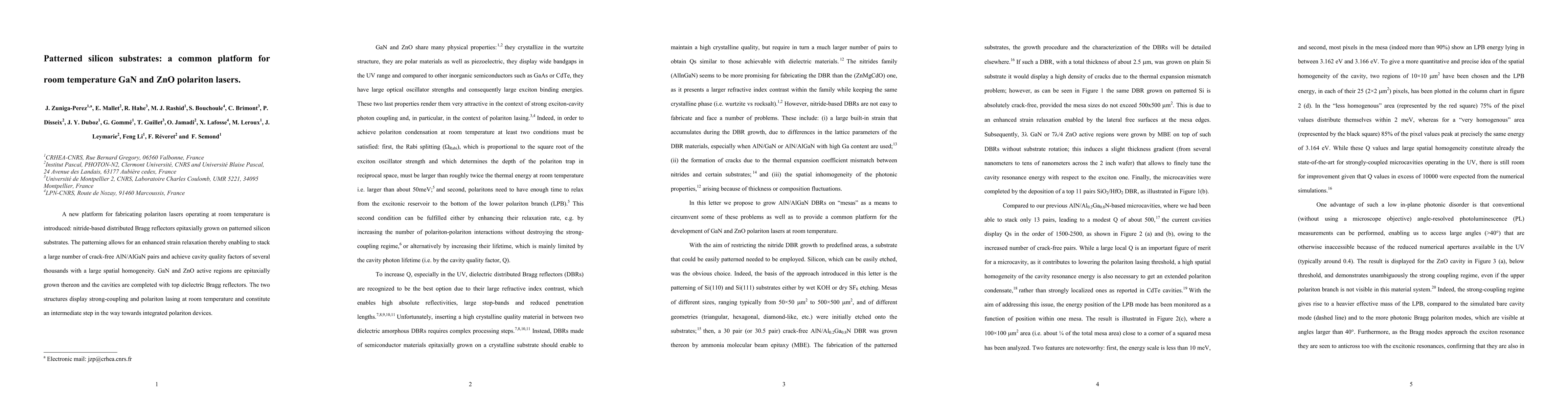 Researchers have developed a platform for fabricating polariton lasers at room temperature using nitride-based distributed Bragg reflectors on patterned silicon substrates, enabling strong-coupling lasing with high spatial homogeneity.