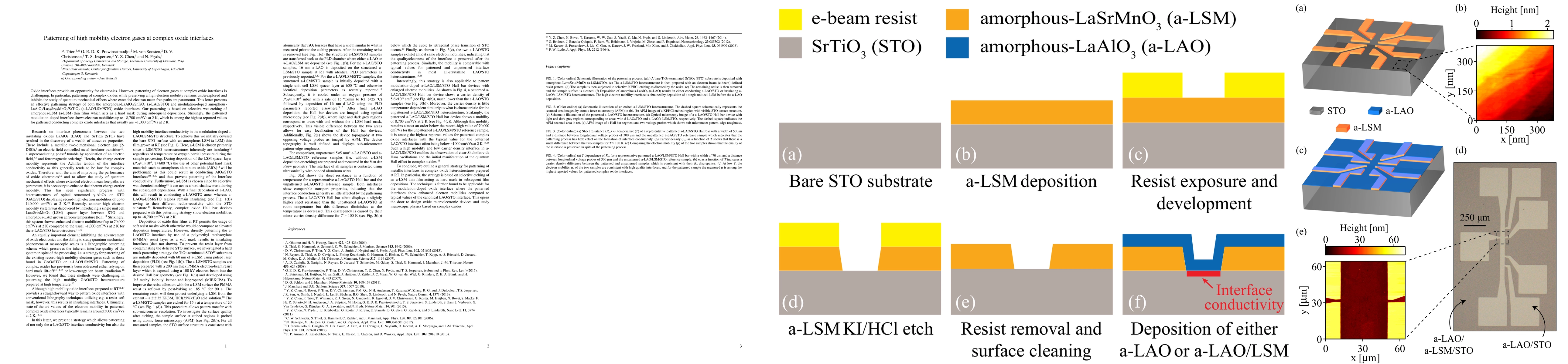 This research paper introduces an effective patterning strategy for high mobility electron gases at complex oxide interfaces, specifically a-LAO/STO and a-LAO/LSM/STO, using selective wet etching of a-LSM as a hard mask. The method achieves electron mobilities of up to ~8,700 cm$^2$/Vs at 2 K, significantly higher than typical values for patterned interfaces.