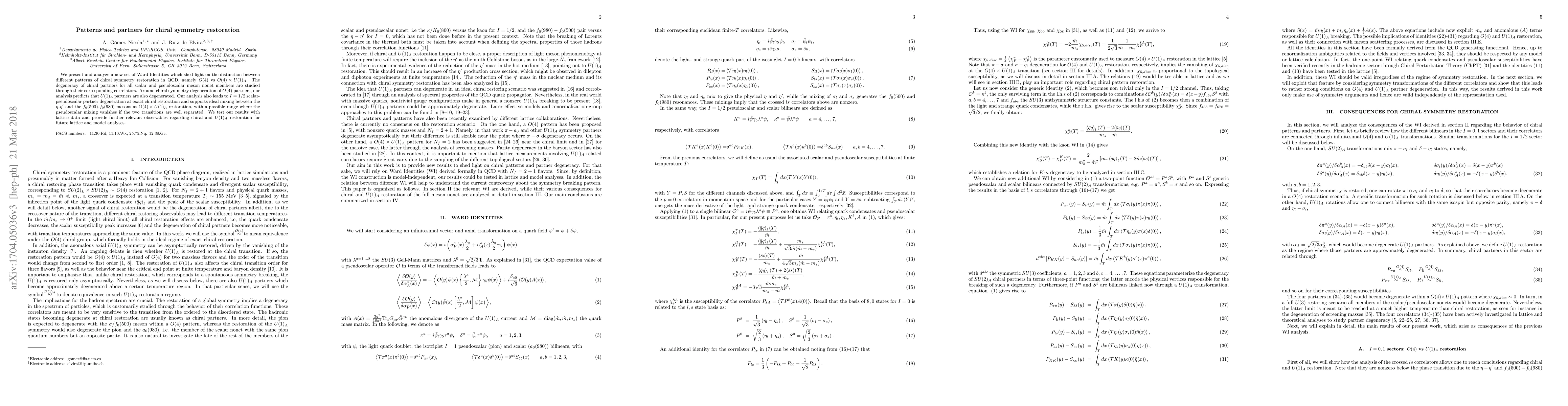 This paper introduces new Ward Identities to distinguish between different chiral symmetry restoration patterns in QCD, specifically $O(4)$ and $O(4)\times U(1)_A$. The study reveals the degeneracy of chiral partners in meson nonets and predicts ideal mixing between certain meson pairs, supported by lattice data.