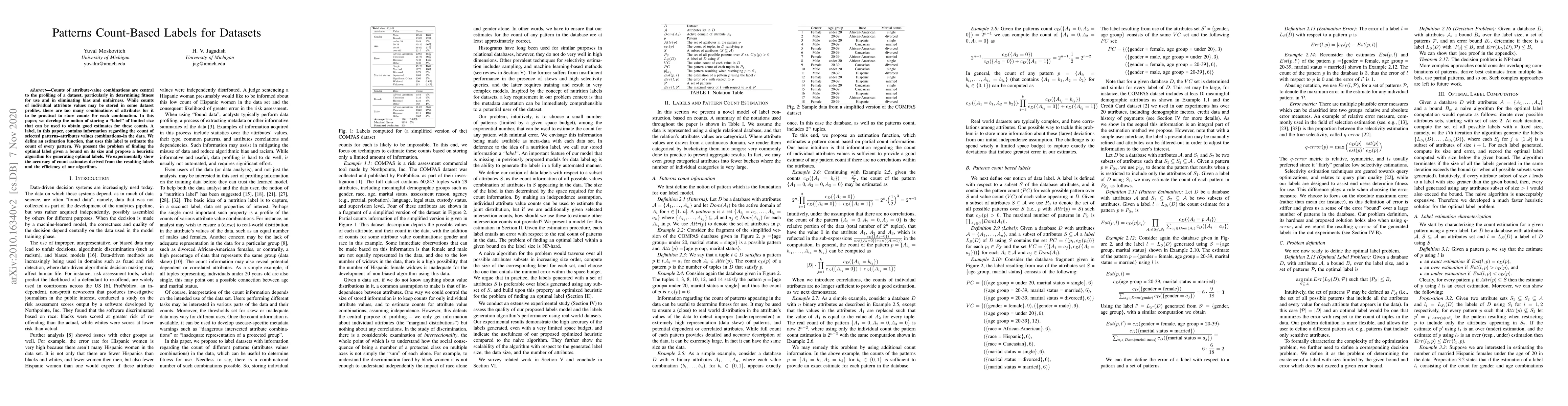 This paper proposes a new approach to storing dataset profiles, using 'labels' of limited size to estimate counts of attribute-value combinations, improving efficiency and accuracy.