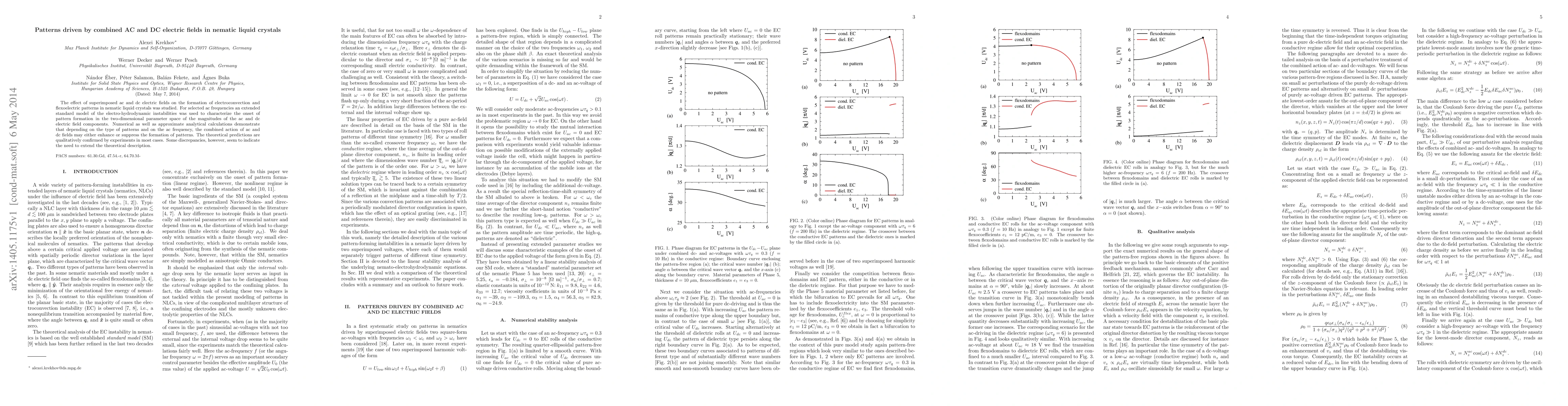 This paper investigates how combined AC and DC electric fields influence electroconvection and flexoelectric patterns in nematic liquid crystals, using a standard model to characterize pattern formation. Theoretical predictions show that the combined fields can either enhance or suppress pattern formation, with experimental results mostly confirming the theory but suggesting some areas for further theoretical refinement.