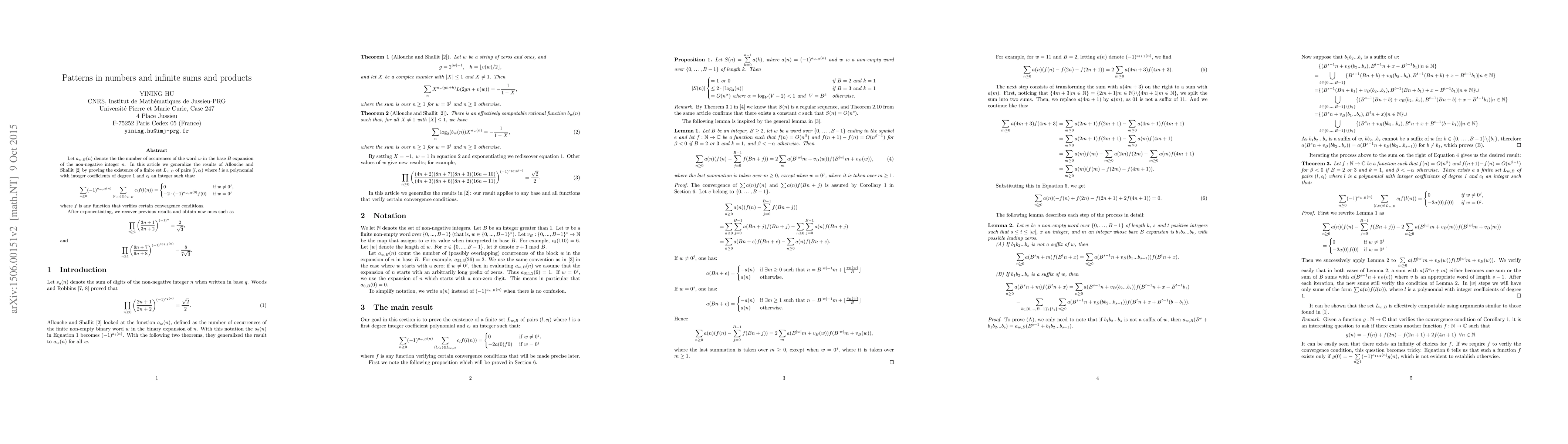 In this article we propose a general method of obtaining infinite sums of products with functions that count patterns in numbers.