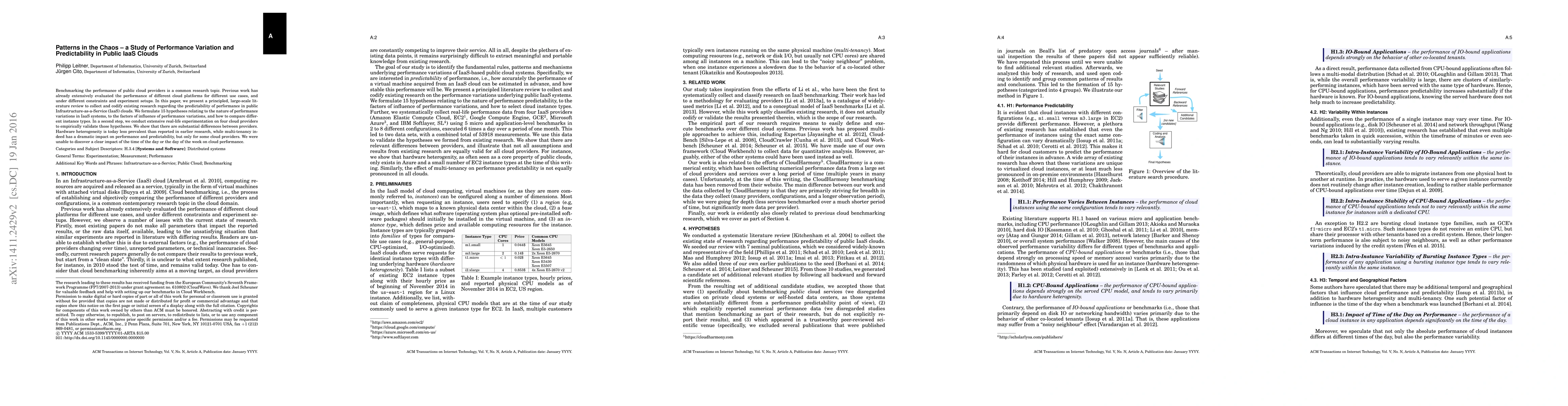 This paper conducts a comprehensive literature review and empirical study to analyze performance variations and predictability in public IaaS clouds, formulating 15 hypotheses regarding these aspects. Experimental validation on Amazon EC2 and Google Compute Engine found that performance predictability is higher in GCE compared to EC2, with multi-tenancy significantly affecting performance.
