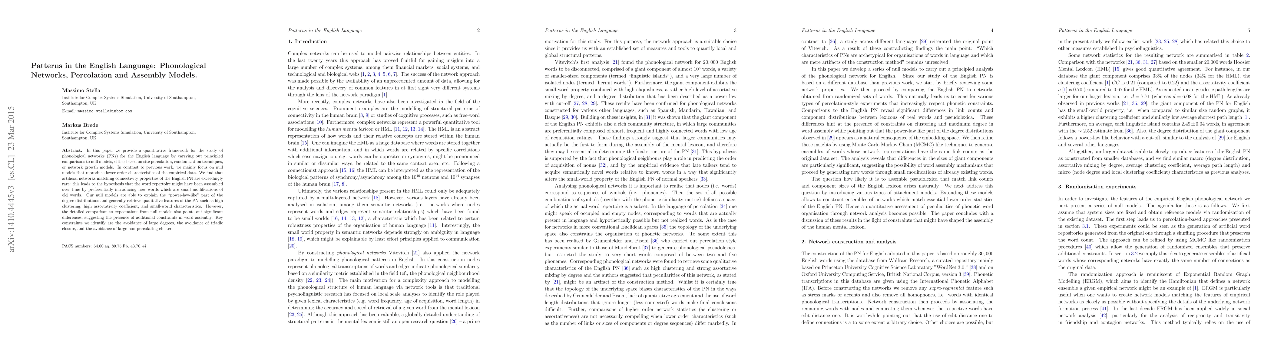 This paper develops a quantitative framework to analyze phonological networks in English, comparing them to null models based on percolation and randomization. The study finds that networks resembling English phonological structures are rare, suggesting a historical assembly process favoring small modifications of existing words.