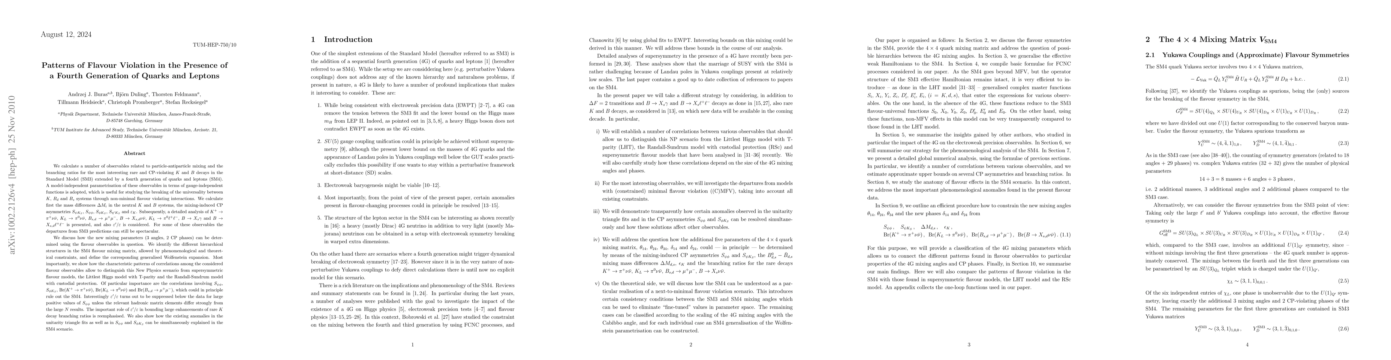 We calculate a number of observables related to particle-antiparticle mixing and the branching ratios for the most interesting rare and CP-violating K and B decays in the Standard Model (SM3) extended by a fourth generation of quarks and leptons (SM4). A model-independent parameterisation of these observables in terms of gauge-independent functions is adopted, which is useful for studying the breaking of the universality between K, Bd and Bs systems through non-minimal flavour violating interactions. We calculate first the mass differences Delta M_i in the neutral K and B system, the mixing-induced CP asymmetries S_{psi K_S}, S_{psi phi}, S_{phi K_S}, S_{eta' K_S} and epsilon_K. Subsequently, a detailed analysis of K^+ -> pi^+ nu nu, K_L -> pi^0 nu nu, B_{s,d} -> mu^+ mu^-, B -> X_{s,d} nu nu, K_L -> pi^0 l^+ l^-, B -> X_s gamma and B -> X_{s,d} l^+ l^- is presented, and also epsilon'/epsilon is considered. For some of these observables the departures from SM3 predictions can still be spectacular. We discuss how the new mixing parameters (3 angles, 2 CP phases) can be determined using the flavour observables in question. We identify the different hierarchical structures in the SM4 flavour mixing matrix, allowed by phenomenological and theoretical constraints, and define the corresponding generalised Wolfenstein expansion. Most importantly, we show how the characteristic patterns of correlations among the considered flavour observables allow to distinguish this New Physics scenario from supersymmetric flavour models, the Littlest Higgs model with T-parity and the Randall-Sundrum model with custodial protection.