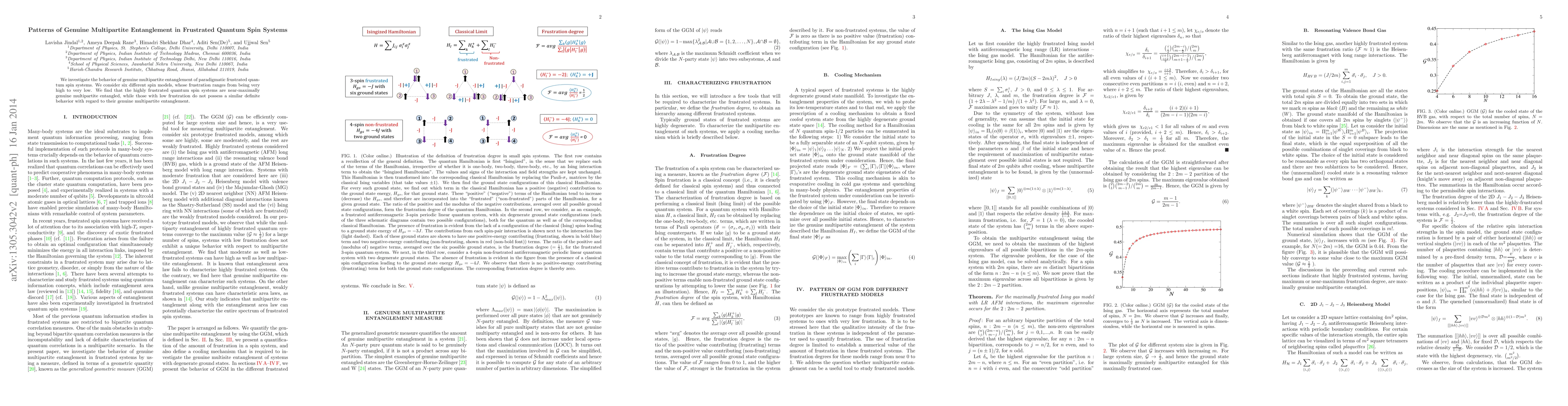 This paper examines the genuine multipartite entanglement in various frustrated quantum spin systems, finding that highly frustrated models exhibit near-maximal entanglement, while systems with low frustration show no clear pattern.