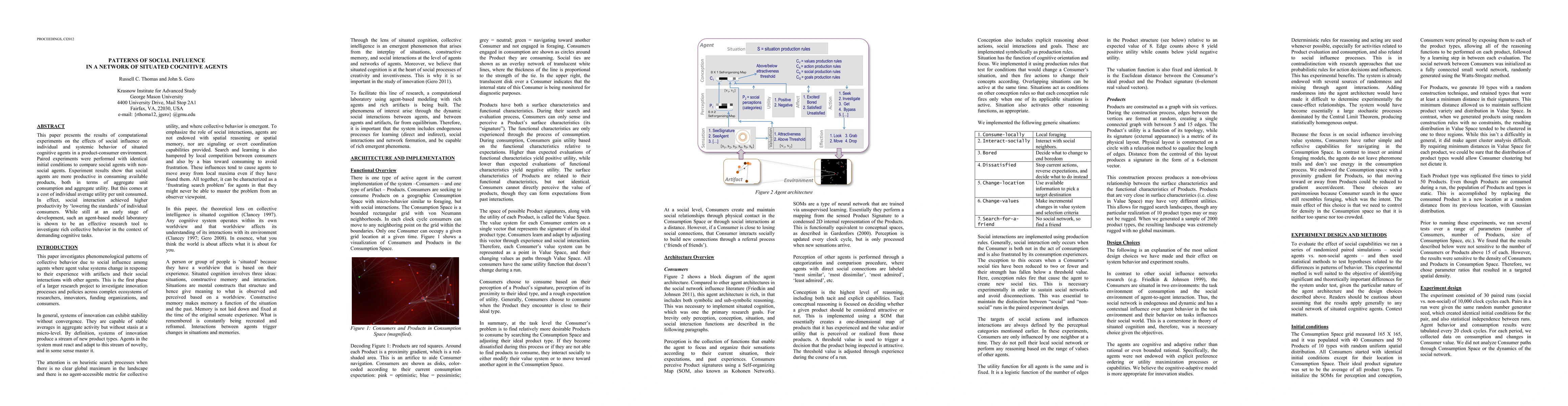 This paper presents the results of computational experiments on the effects of social influence on individual and systemic behavior of situated cognitive agents in a product-consumer environment. Paired experiments were performed with identical initial conditions to compare social agents with non- social agents. Experiment results show that social agents are more productive in consuming available products, both in terms of aggregate unit consumption and aggregate utility. But this comes at a cost of individual average utility per unit consumed. In effect, social interaction achieved higher productivity by 'lowering the standards' of individual consumers. While still at an early stage of development, such an agent-based model laboratory is shown to be an effective research tool to investigate rich collective behavior in the context of demanding cognitive tasks.