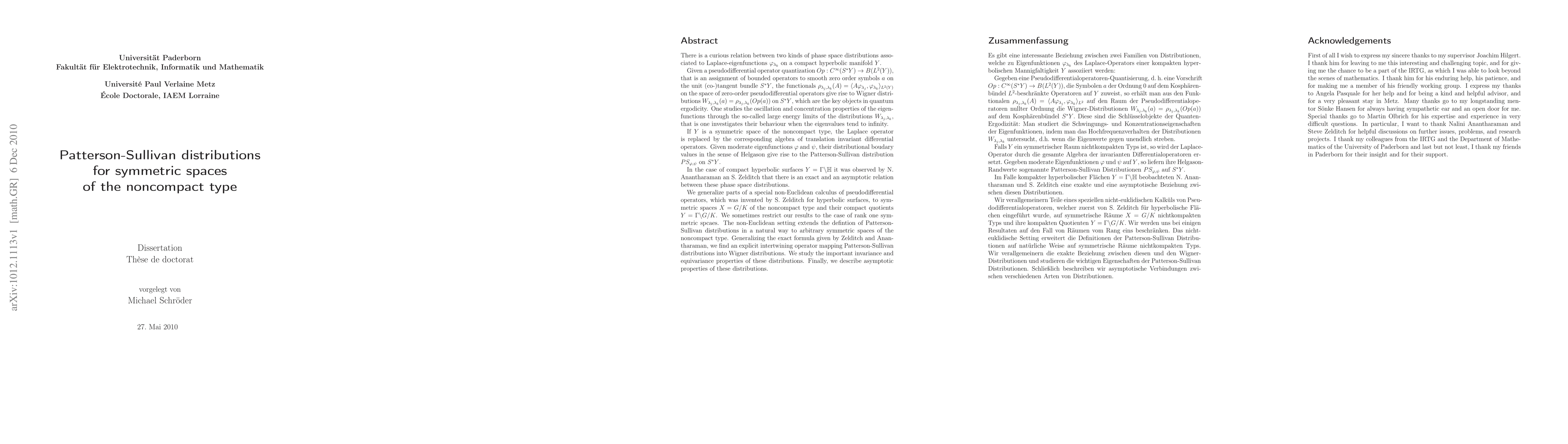 This paper generalizes the non-Euclidean calculus of pseudodifferential operators to symmetric spaces of the noncompact type and their compact quotients, extending the definition of Patterson-Sullivan distributions. It introduces an explicit intertwining operator mapping these distributions into Wigner distributions and explores their invariance, equivariance, and asymptotic properties.