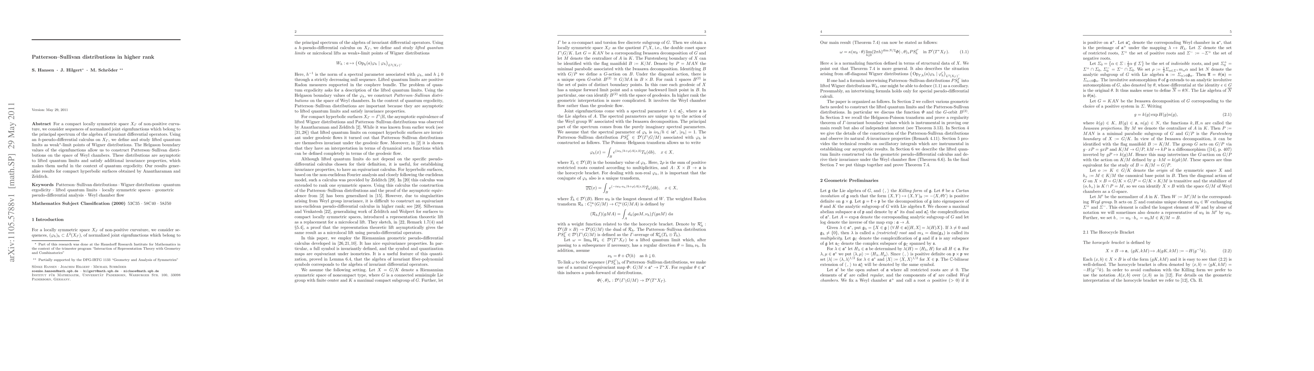 This paper studies Patterson--Sullivan distributions for sequences of normalized joint eigenfunctions on a compact locally symmetric space of non-positive curvature, generalizing previous results for hyperbolic surfaces. It constructs these distributions using the boundary values of eigenfunctions and their lifted quantum limits, providing insights into quantum ergodicity.