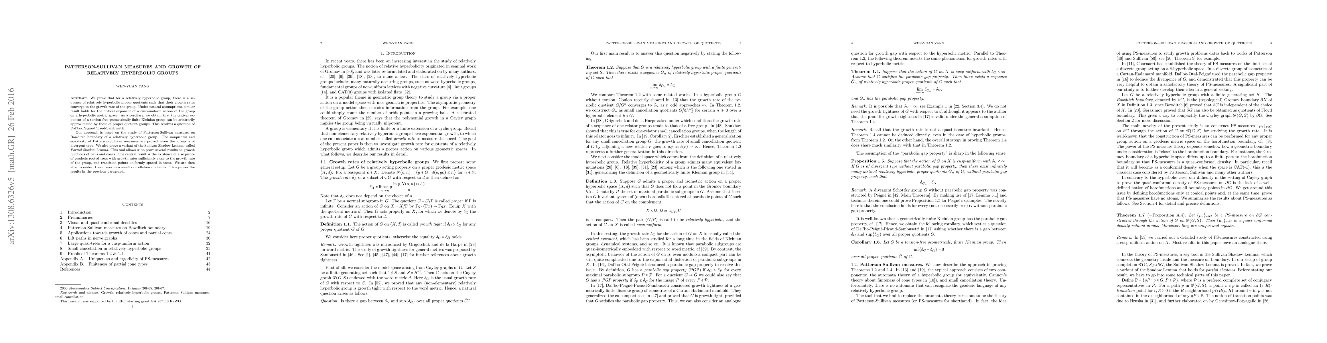 We prove that for a relatively hyperbolic group G there is a sequence of relatively hyperbolic proper quotients such that their growth rates converge to the growth rate of G. Under natural assumptions, the same conclusion holds for the critical exponent of a cusp-uniform action of G on a hyperbolic metric space. As a corollary, we obtain that the critical exponent of a torsion-free geometrically finite Kleinian group can be arbitrarily approximated by those of quotient groups. This resolves a question of Dal'bo-Peign\'e-Picaud-Sambusetti. Our approach is based on the study of Patterson-Sullivan measures on Bowditch boundary of a relatively hyperbolic group. The uniqueness and ergodicity of Patterson-Sullivan measures are proved when the group is divergent. We prove a variant of the Sullivan Shadow Lemma, called Partial Shadow Lemma. This tool allows us to prove several results on growth functions of balls and cones. One central result is the existence of a sequence of geodesic trees with growth rates sufficiently close to the growth rate of G, and transition points uniformly spaced in trees. By taking small cancellation over hyperbolic elements of high powers, we can embed these trees into properly constructed quotients of G. This proves the results in the previous paragraph.