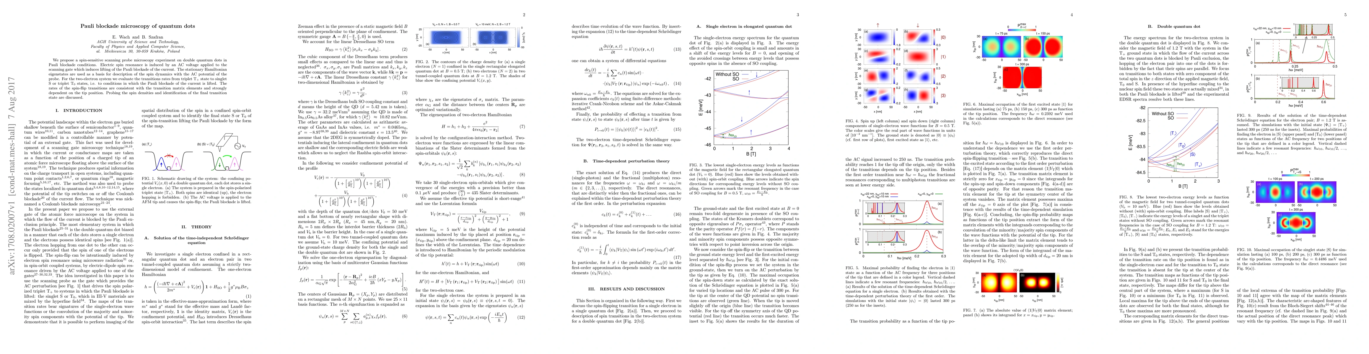 We propose a spin-sensitive scanning probe microscopy experiment on double quantum dots in Pauli blockade conditions. Electric spin resonance is induced by an AC voltage applied to the scanning gate which induces lifting of the Pauli blockade of the current. The stationary Hamiltonian eigenstates are used as a basis for description of the spin dynamics with the AC potential of the probe. For the two-electron system we evaluate the transitions rates from triplet $\mathrm{T}_+$ state to singlet $\mathrm{S}$ or triplet $\mathrm{T}_0$ states, i.e. to conditions in which the Pauli blockade of the current is lifted. The rates of the spin-flip transitions are consistent with the transition matrix elements and strongly dependent on the tip position. Probing the spin densities and identification of the final transition state are discussed.
