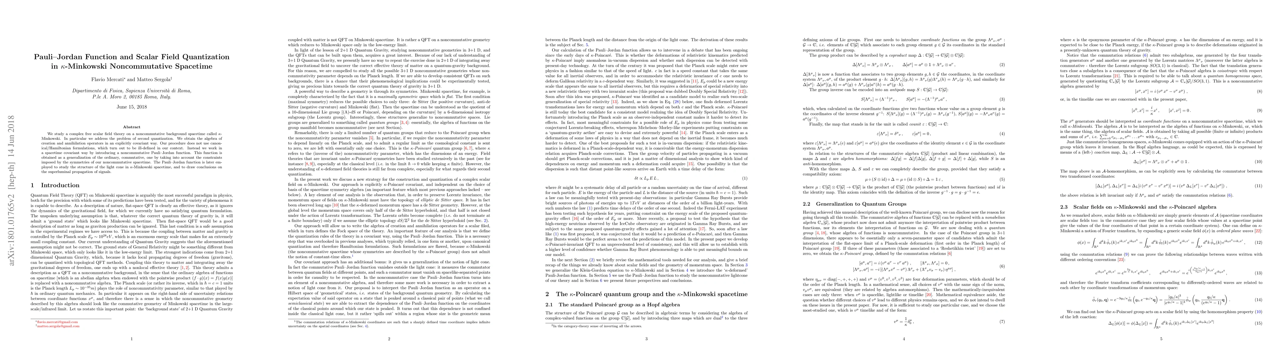 This paper quantizes a complex free scalar field on $\kappa$-Minkowski noncommutative spacetime, introducing a noncommutative Pauli-Jordan function for second quantization. The study avoids ill-defined canonical formulations and instead uses a covariant approach to explore the light cone structure and implications for superluminal signal propagation.