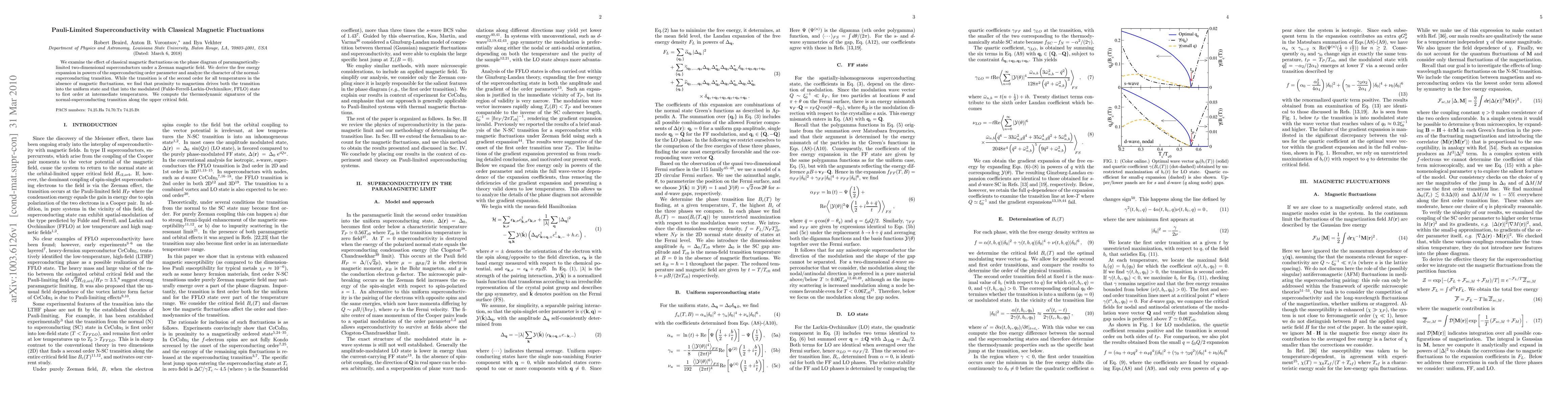 We examine the effect of classical magnetic fluctuations on the phase diagram of paramagneticallylimited two-dimensional superconductors under a Zeeman magnetic field. We derive the free energy expansion in powers of the superconducting order parameter and analyze the character of the normalsuperconducting transition. While the transition is of the second order for all temperatures in the absence of magnetic fluctuations, we find that proximity to magnetism drives both the transition into the uniform state and that into the modulated (Fulde-Ferrell-Larkin-Ovchinnikov, FFLO) state to first order at intermediate temperatures. We compute the thermodynamic signatures of the normal-superconducting transition along the upper critical field.