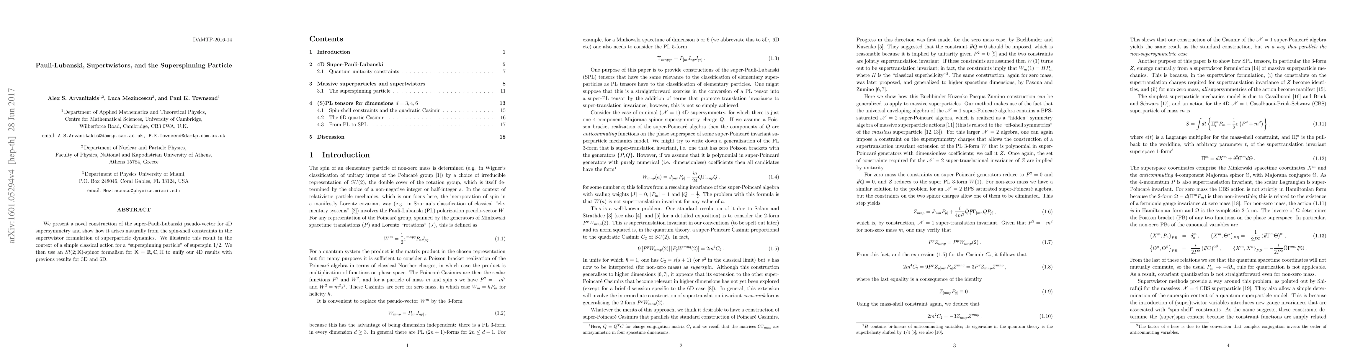 We present a novel construction of the super-Pauli-Lubanski pseudo-vector for 4D supersymmetry and show how it arises naturally from the spin-shell constraints in the supertwistor formulation of superparticle dynamics. We illustrate this result in the context of a simple classical action for a "superspinning particle" of superspin 1/2. We then use an Sl(2;K)-spinor formalism for K=R,C,H to unify our 4D results with previous results for 3D and 6D (super)Pauli-Lubanski tensors.