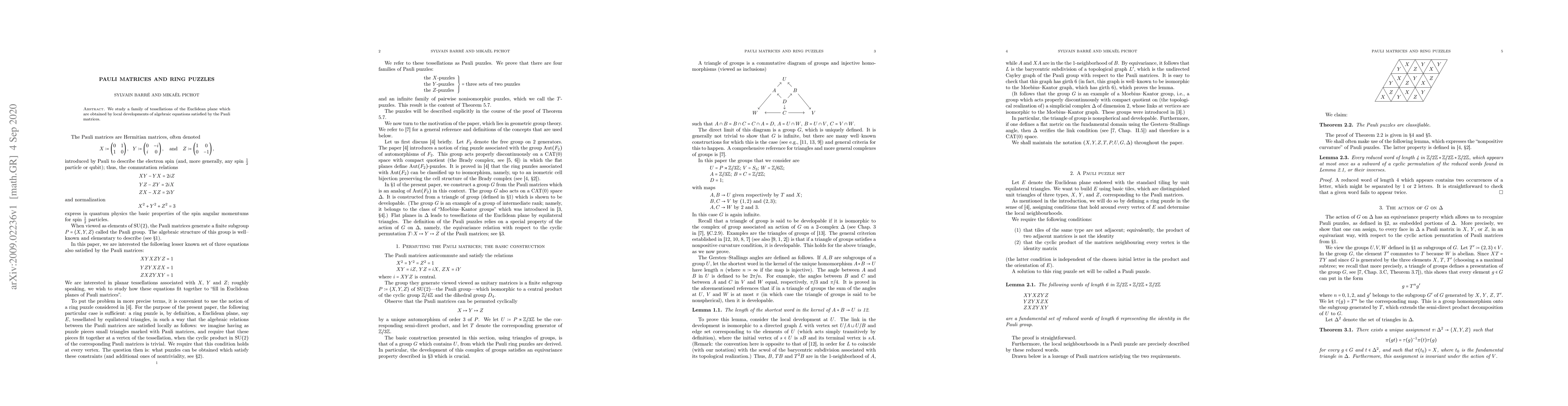 We study a family of tessellations of the Euclidean plane which are obtained by local developments of algebraic equations satisfied by the Pauli matrices.