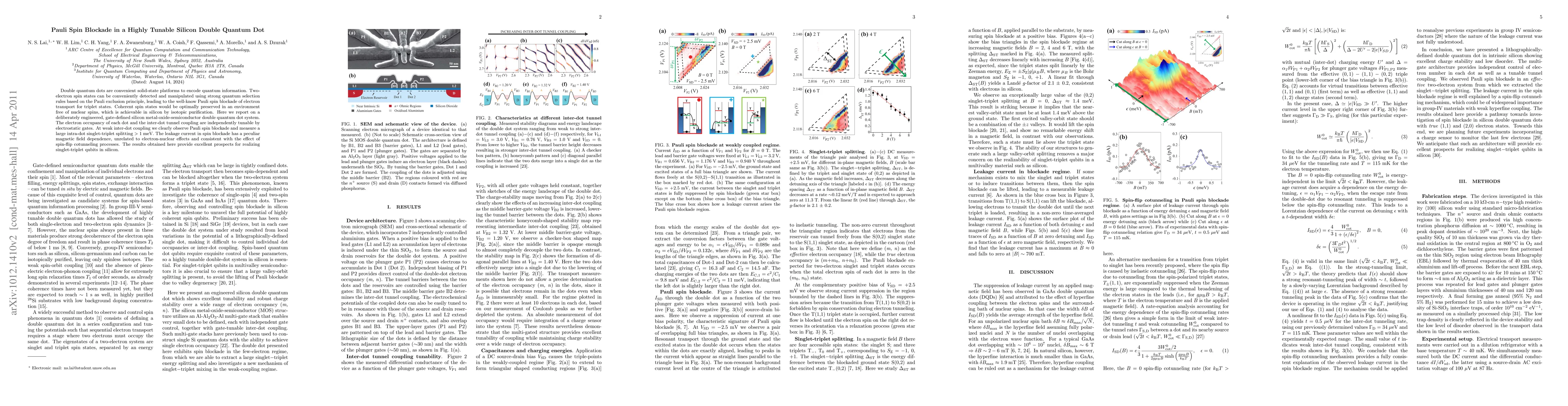 This paper investigates a tunable silicon double quantum dot system, where Pauli spin blockade is observed under weak inter-dot coupling. The study highlights the magnetic field dependence of leakage current due to spin-flip cotunneling, paving the way for singlet-triplet qubit realization in silicon.