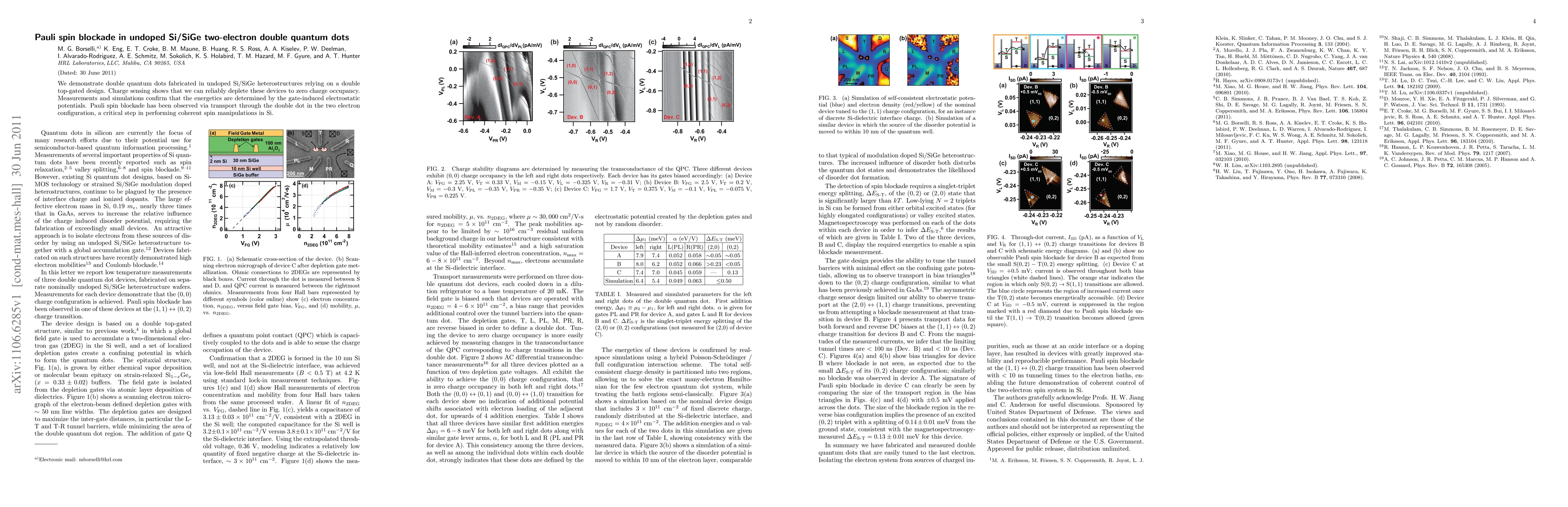 This research demonstrates undoped Si/SiGe double quantum dots with reliable zero charge occupancy, showing that Pauli spin blockade can be observed in the two-electron configuration, which is essential for coherent spin manipulations.