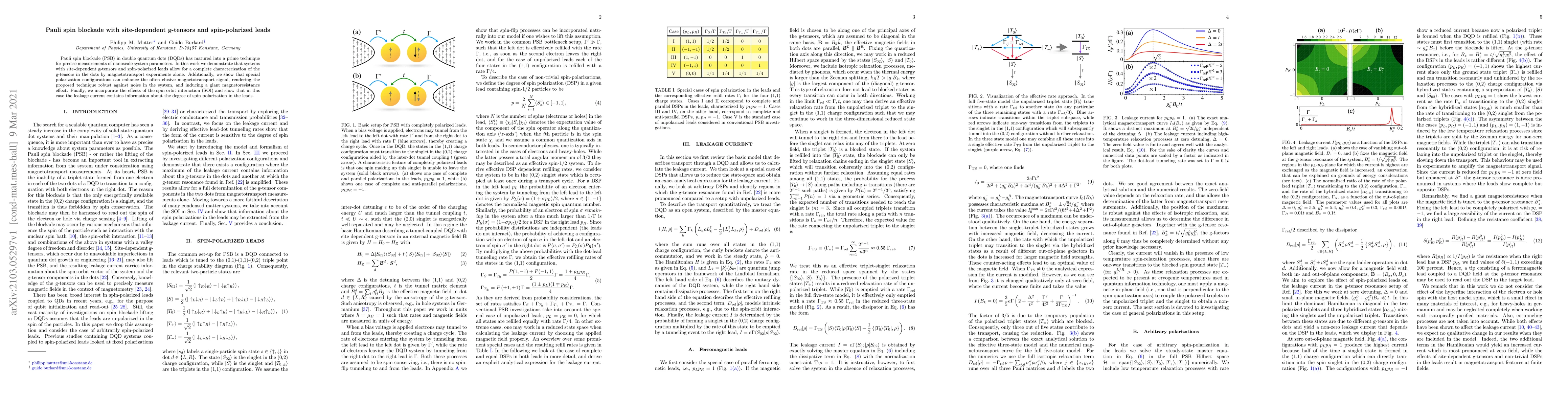 Pauli spin blockade (PSB) in double quantum dots (DQDs) has matured into a prime technique for precise measurements of nanoscale system parameters. In this work we demonstrate that systems with site-dependent g-tensors and spin-polarized leads allow for a complete characterization of the g-tensors in the dots by magnetotransport experiments alone. Additionally, we show that special polarization configurations can enhance the often elusive magnetotransport signal, rendering the proposed technique robust against noise in the system, and inducing a giant magnetoresistance effect. Finally, we incorporate the effects of the spin-orbit interaction (SOI) and show that in this case the leakage current contains information about the degree of spin polarization in the leads.