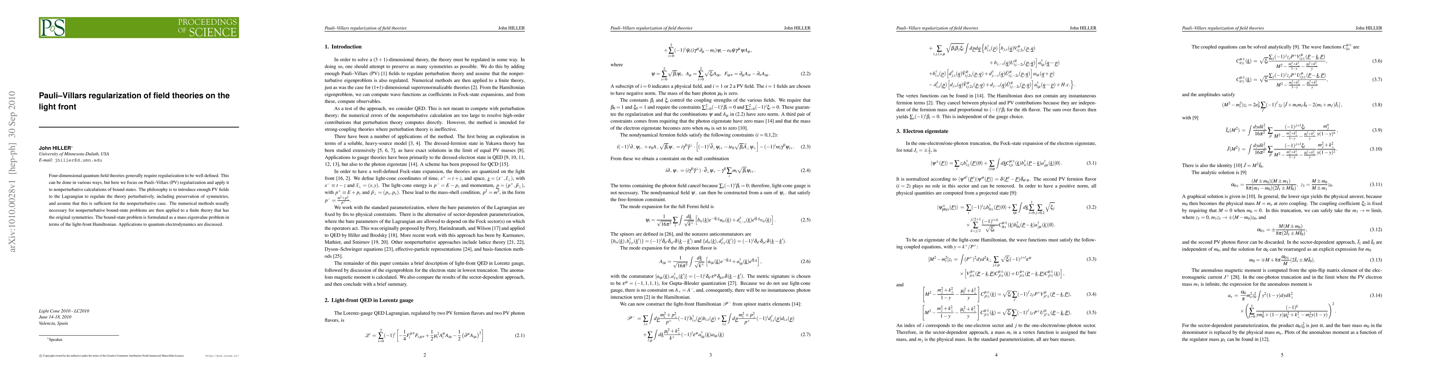 Four-dimensional quantum field theories generally require regularization to be well defined. This can be done in various ways, but here we focus on Pauli--Villars (PV) regularization and apply it to nonperturbative calculations of bound states. The philosophy is to introduce enough PV fields to the Lagrangian to regulate the theory perturbatively, including preservation of symmetries, and assume that this is sufficient for the nonperturbative case. The numerical methods usually necessary for nonperturbative bound-state problems are then applied to a finite theory that has the original symmetries. The bound-state problem is formulated as a mass eigenvalue problem in terms of the light-front Hamiltonian. Applications to quantum electrodynamics are discussed.