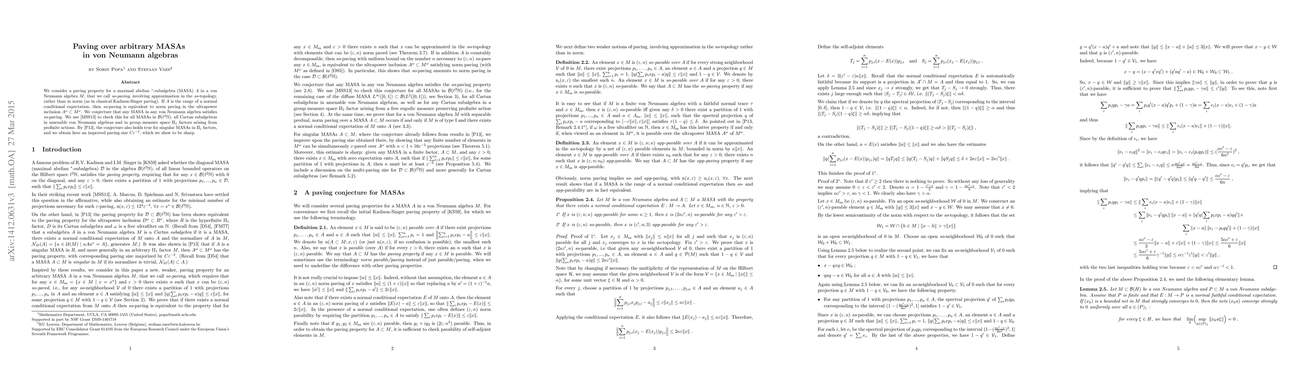 This paper explores a new paving property for maximal abelian *-subalgebras (MASAs) in von Neumann algebras called so-paving, which involves approximation in the so-topology. The authors conjecture that any MASA satisfies so-paving and provide evidence supporting this for specific classes of MASAs, improving the paving size to $C\varepsilon^{-2}$ and proving its sharpness.