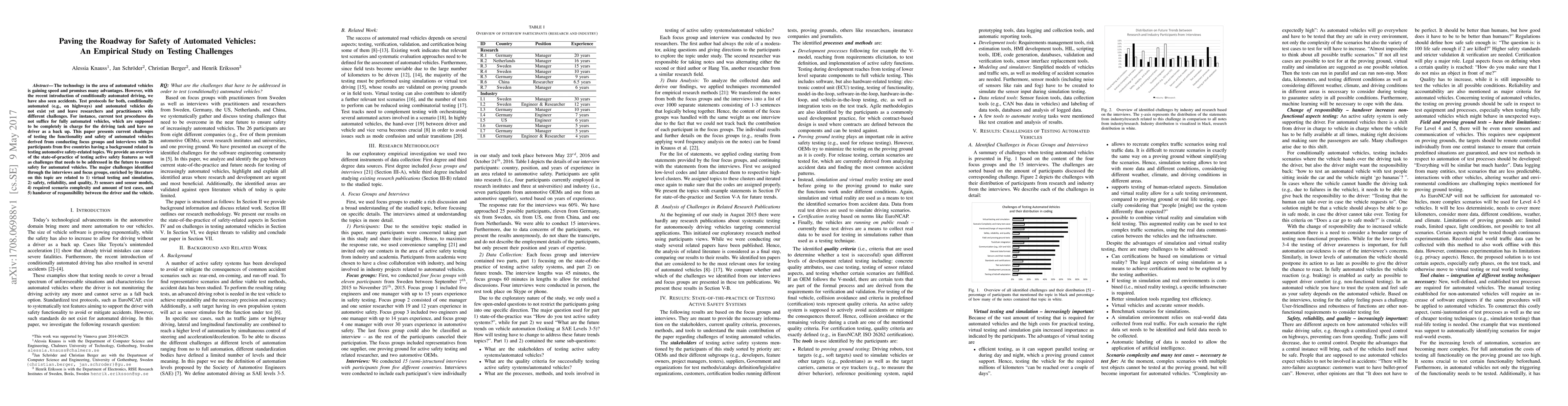This paper explores the challenges in testing the safety and functionality of automated vehicles, highlighting issues from interviews and focus groups with 26 experts across five countries. Key challenges include virtual testing, ensuring safety and reliability, sensor models, scenario complexity, and driver-vehicle responsibility handover.