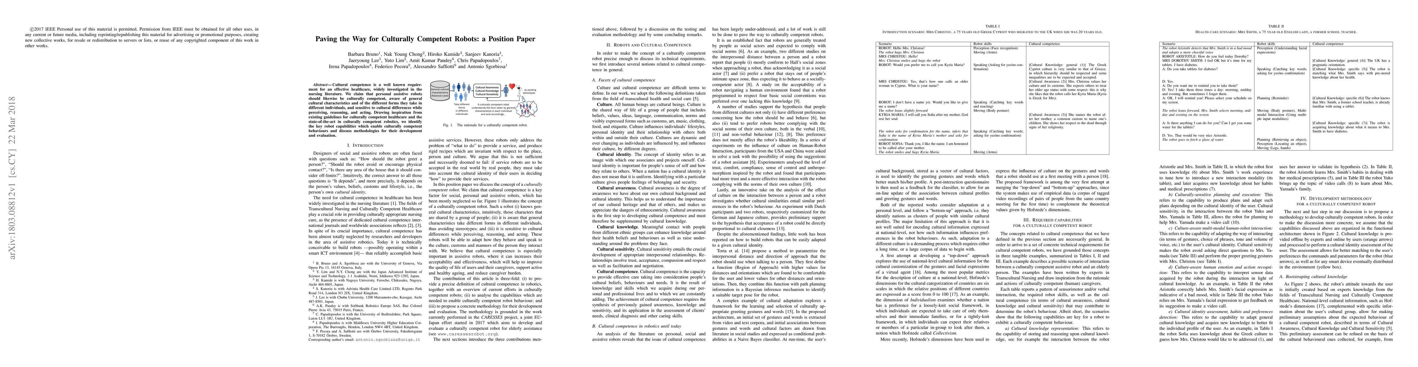 Cultural competence is a well known requirement for an effective healthcare, widely investigated in the nursing literature. We claim that personal assistive robots should likewise be culturally competent, aware of general cultural characteristics and of the different forms they take in different individuals, and sensitive to cultural differences while perceiving, reasoning, and acting. Drawing inspiration from existing guidelines for culturally competent healthcare and the state-of-the-art in culturally competent robotics, we identify the key robot capabilities which enable culturally competent behaviours and discuss methodologies for their development and evaluation.