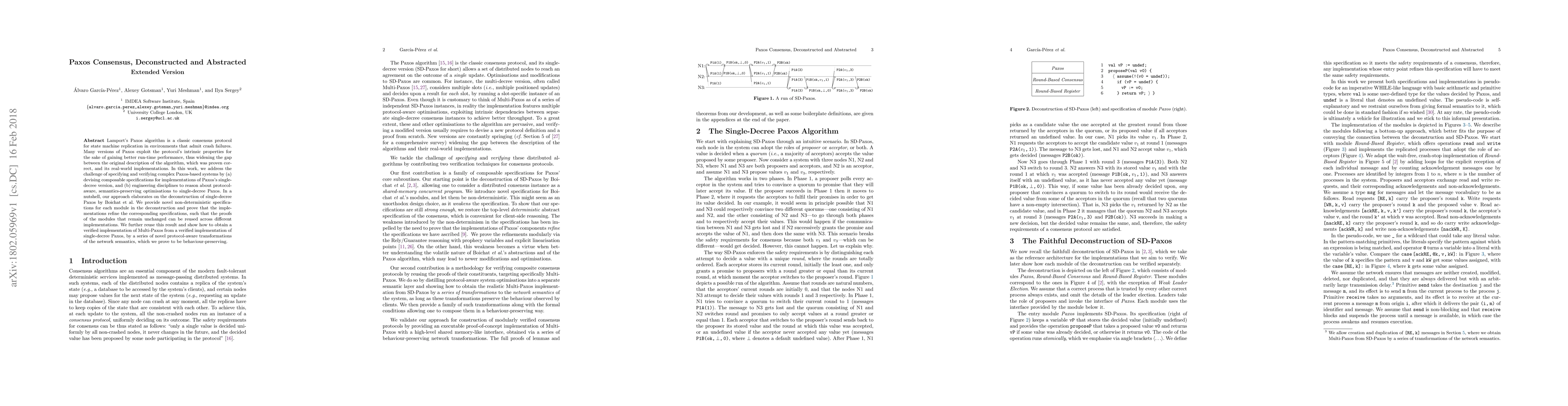 This paper deconstructs and abstracts Lamport's Paxos algorithm, providing composable specifications for its single-decree version and novel optimizations. It demonstrates how verified implementations of single-decree Paxos can be transformed into verified Multi-Paxos through protocol-aware, semantics-preserving transformations.