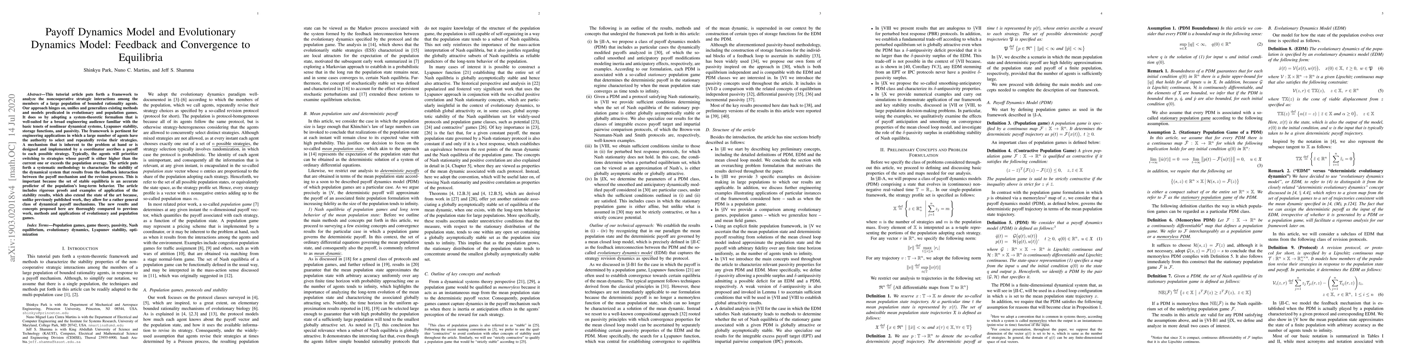 This tutorial article puts forth a framework to analyze the noncooperative strategic interactions among the members of a large population of bounded rationality agents. Our approach hinges on, unifies and generalizes existing methods and models predicated in evolutionary and population games. It does so by adopting a system-theoretic formalism that is well-suited for a broad engineering audience familiar with the basic tenets of nonlinear dynamical systems, Lyapunov stability, storage functions, and passivity. The framework is pertinent for engineering applications in which a large number of agents have the authority to select and repeatedly revise their strategies. A mechanism that is inherent to the problem at hand or is designed and implemented by a coordinator ascribes a payoff to each possible strategy. Typically, the agents will prioritize switching to strategies whose payoff is either higher than the current one or exceeds the population average. The article puts forth a systematic methodology to characterize the stability of the dynamical system that results from the feedback interaction between the payoff mechanism and the revision process. This is important because the set of stable equilibria is an accurate predictor of the population's long-term behavior. The article includes rigorous proofs and examples of application of the stability results, which also extend the state of the art because, unlike previously published work, they allow for a rather general class of dynamical payoff mechanisms. The new results and concepts proposed here are thoroughly compared to previous work, methods and applications of evolutionary and population games.