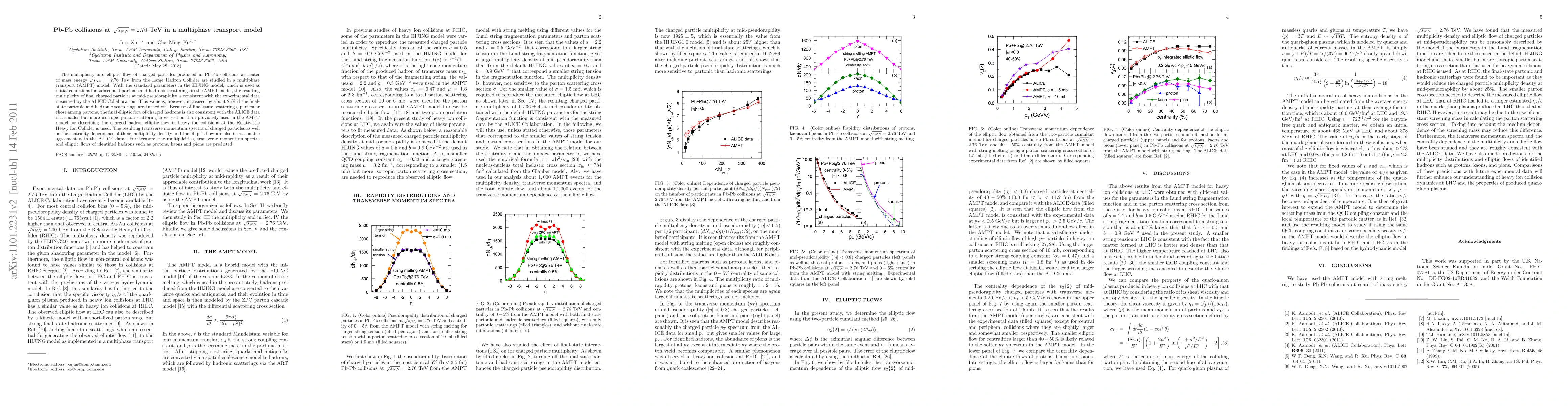 The multiplicity and elliptic flow of charged particles produced in Pb-Pb collisions at center of mass energy $\sqrt{s_{NN}}=2.76$ TeV from the Large Hadron Collider are studied in a multiphase transport (AMPT) model. With the standard parameters in the HIJING model, which is used as initial conditions for subsequent partonic and hadronic scatterings in the AMPT model, the resulting multiplicity of final charged particles at mid-pseudorapidity is consistent with the experimental data measured by the ALICE Collaboration. This value is, however, increased by about 25% if the final-state partonic and hadronic scatterings are turned off. Because of final-state scatterings, particular those among partons, the final elliptic flow of charged hadrons is also consistent with the ALICE data if a smaller but more isotropic parton scattering cross section than previously used in the AMPT model for describing the charged hadron elliptic flow in heavy ion collisions at the Relativistic Heavy Ion Collider is used. The resulting transverse momentum spectra of charged particles as well as the centrality dependence of their multiplicity density and the elliptic flow are also in reasonable agreement with the ALICE data. Furthermore, the multiplicities, transverse momentum spectra and elliptic flows of identified hadrons such as protons, kaons and pions are predicted.