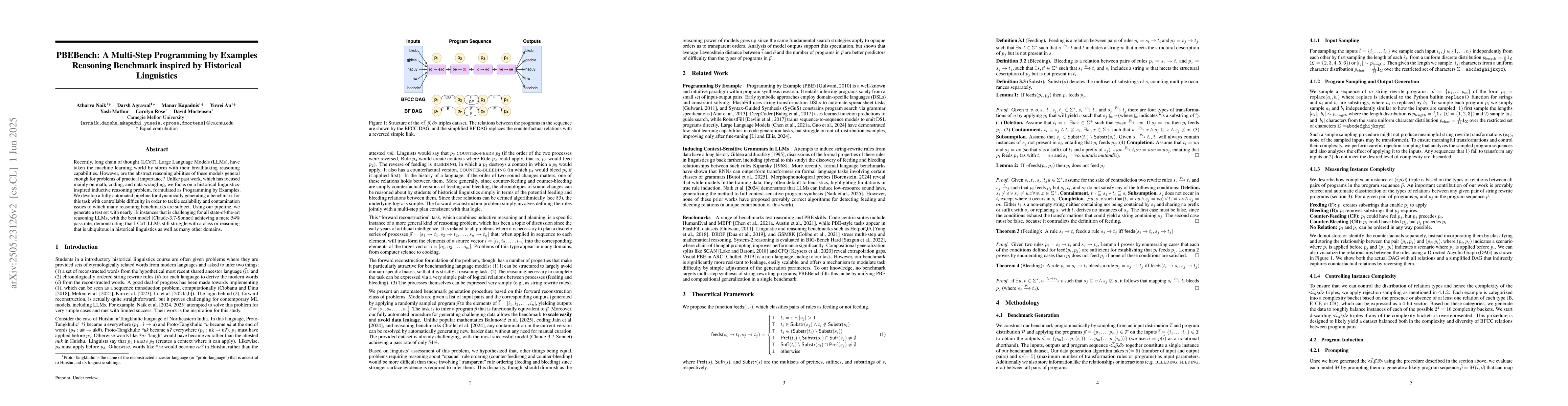 Unlike past work focusing on math, coding, and data wrangling, this research introduces a historical linguistics-inspired reasoning problem formulated as Programming by Examples.