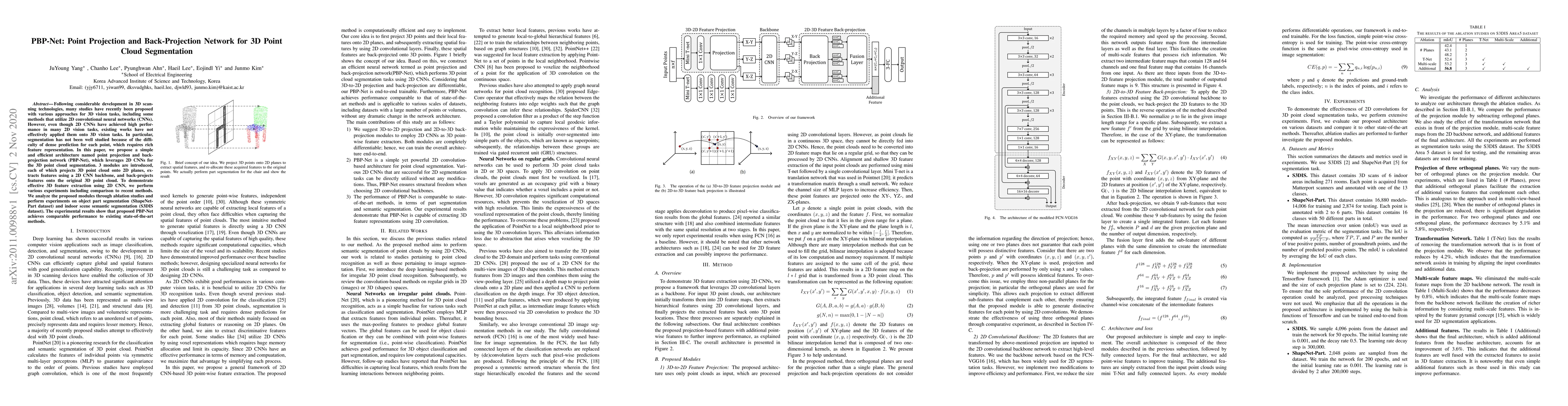PBP-Net introduces a novel architecture leveraging 2D CNNs for 3D point cloud segmentation by projecting and back-projecting 3D points through 2D planes, achieving competitive results on ShapeNet-Part and S3DIS datasets. The method demonstrates effective 3D feature extraction and dense prediction capabilities.