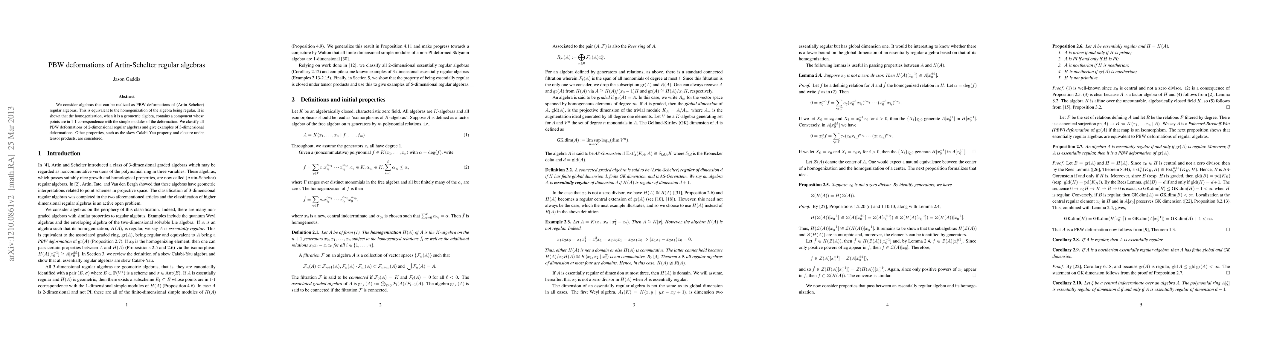 This paper studies PBW deformations of Artin-Schelter regular algebras, showing that their homogenization is regular and contains a component corresponding to simple modules. It classifies 2-dimensional deformations and provides examples of 3-dimensional ones, also discussing properties like skew Calabi-Yau and tensor product closure.