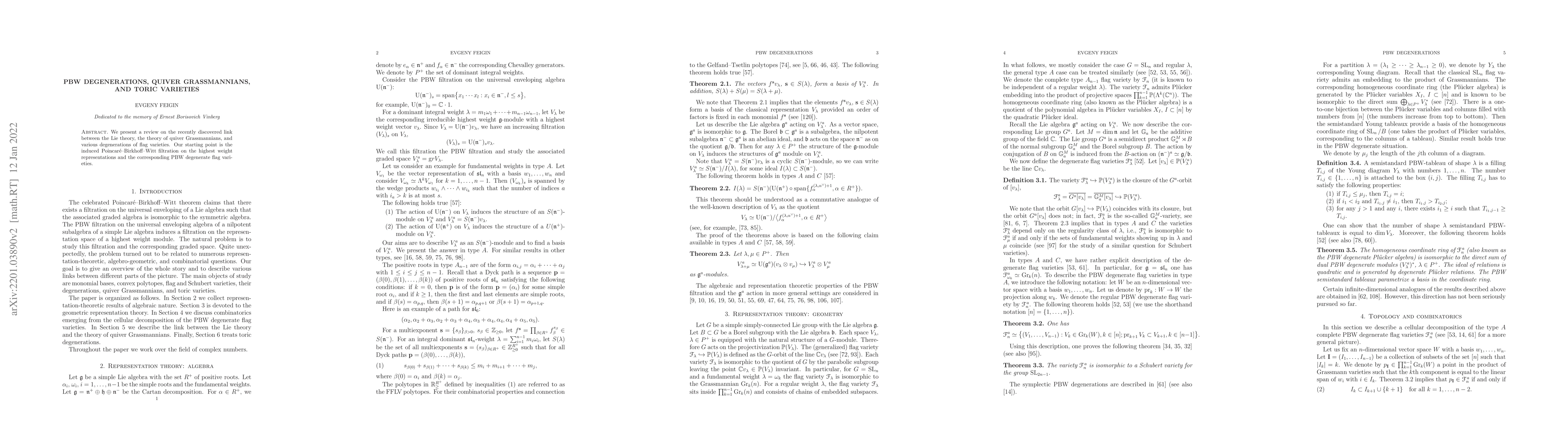 Summary: This paper reviews the emerging connections between Lie theory, quiver Grassmannians, and flag variety degenerations, focusing on the induced Poincaré-Birkhoff-Witt filtration on highest weight representations and its relation to degenerate flag varieties.