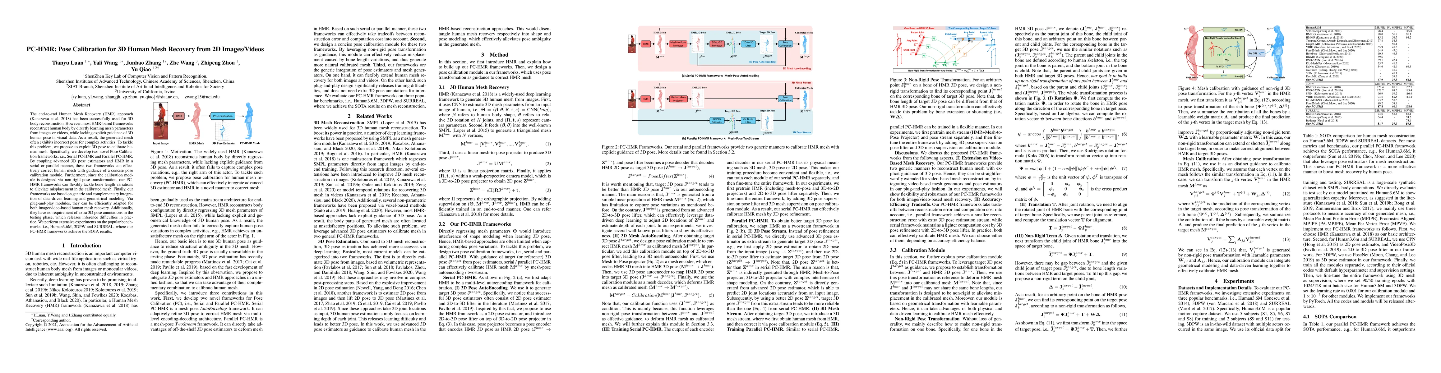 The paper proposes PC-HMR frameworks to improve 3D human mesh recovery by integrating 3D pose calibration, achieving state-of-the-art results on benchmarks like Human3.6M and 3DPW without requiring additional 3D pose annotations during inference.