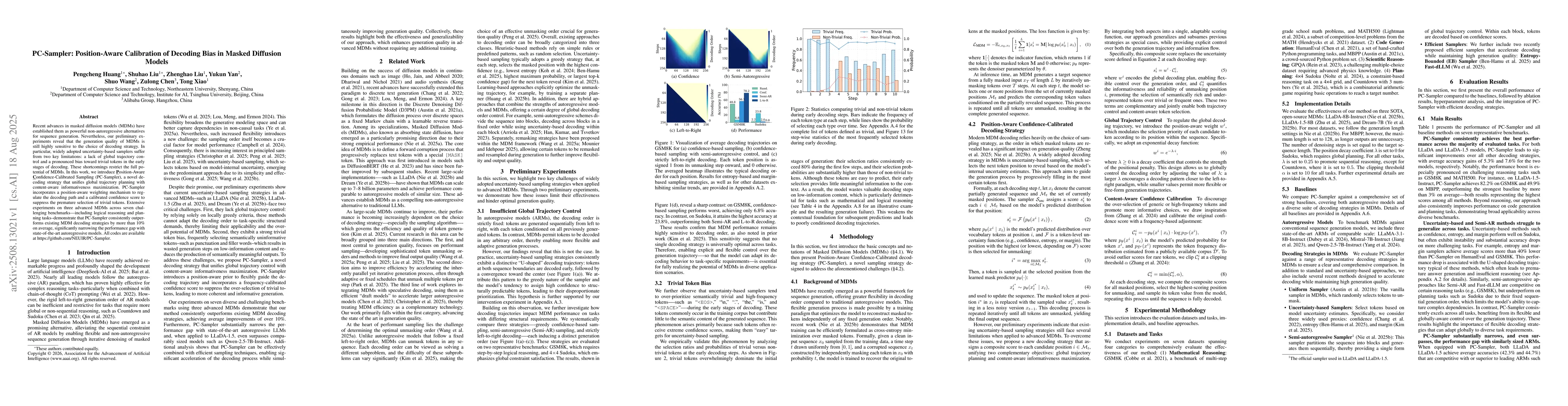 This research addresses the limitations of existing MDM decoding strategies and demonstrates the potential of PC-Sampler to narrow the performance gap with state-of-the-art autoregressive models.