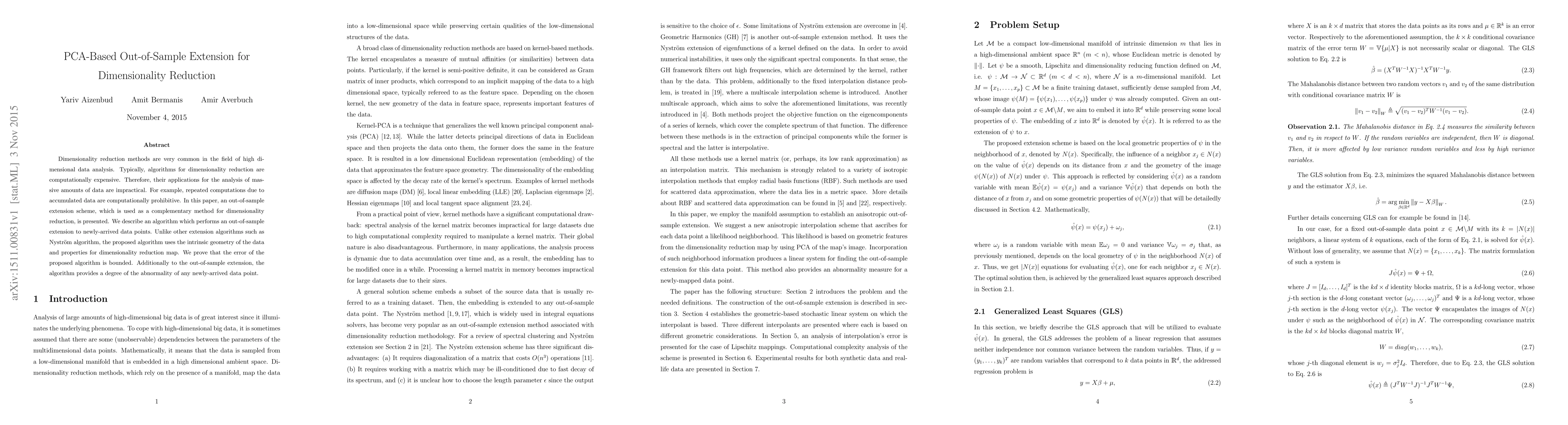 This paper introduces an out-of-sample extension scheme for PCA-based dimensionality reduction, enabling efficient analysis of new data points without recomputing the entire transformation. The proposed algorithm leverages the intrinsic geometry of the data, ensuring bounded error and providing a measure of abnormality for new data points.