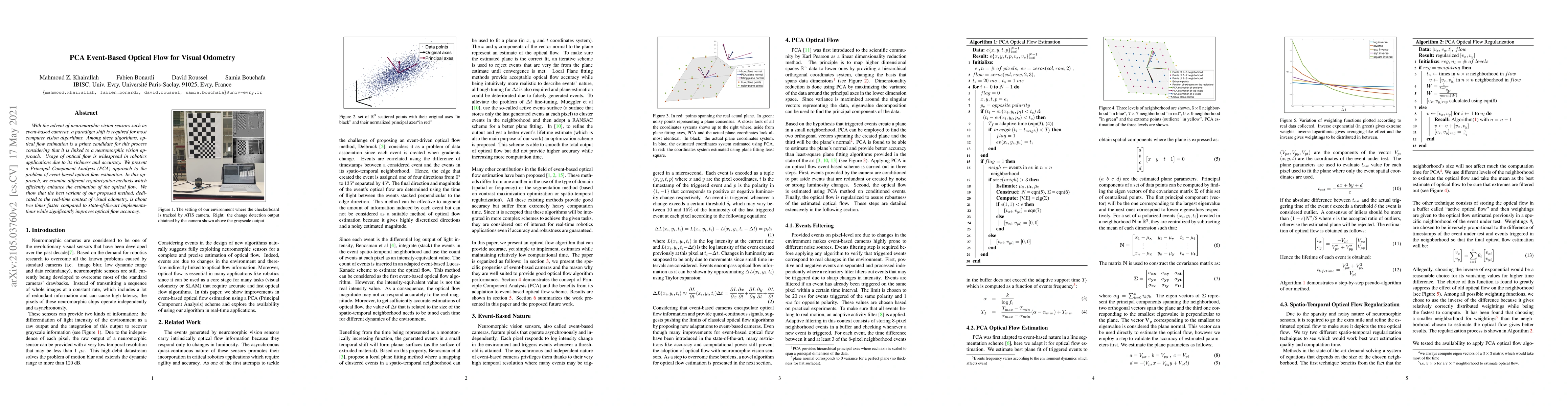 This paper proposes a PCA-based method for event-based optical flow estimation, enhancing accuracy and speed for real-time visual odometry. The method employs regularization techniques to improve optical flow estimation, achieving nearly double the speed of state-of-the-art methods while maintaining high accuracy.