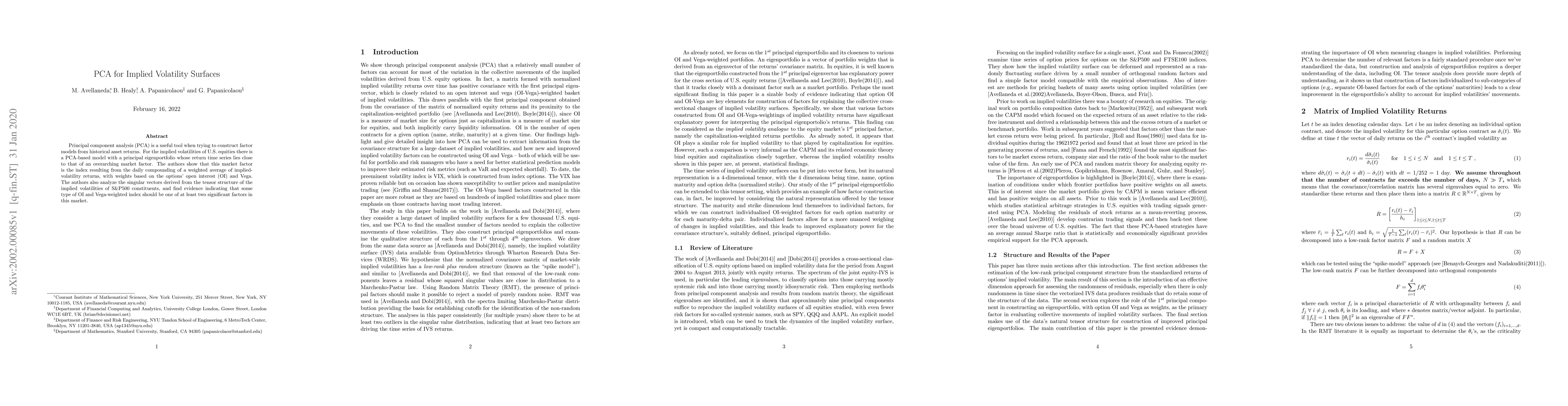 Researchers used PCA to analyze implied volatility surfaces of US equities and found that a weighted average index based on open interest and Vega explained market returns. They also identified two significant factors in the market related to OI and Vega-weighted indices.