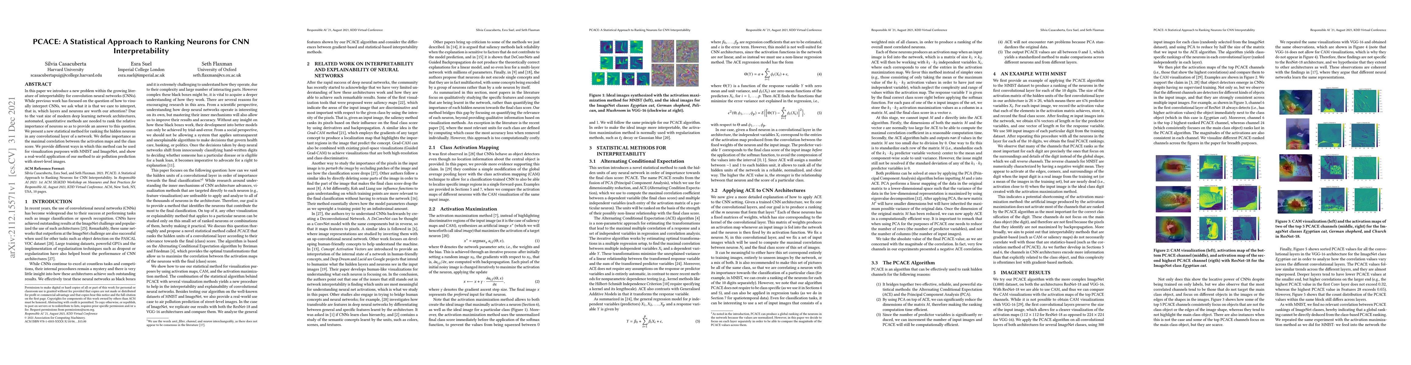 This paper introduces PCACE, a statistical method for ranking the importance of neurons in convolutional layers of CNNs, based on the maximal correlation between neuron activations and class scores. The method aids in interpretability by identifying which neurons and layers are most valuable, demonstrated through applications on MNIST, ImageNet, and air pollution prediction.