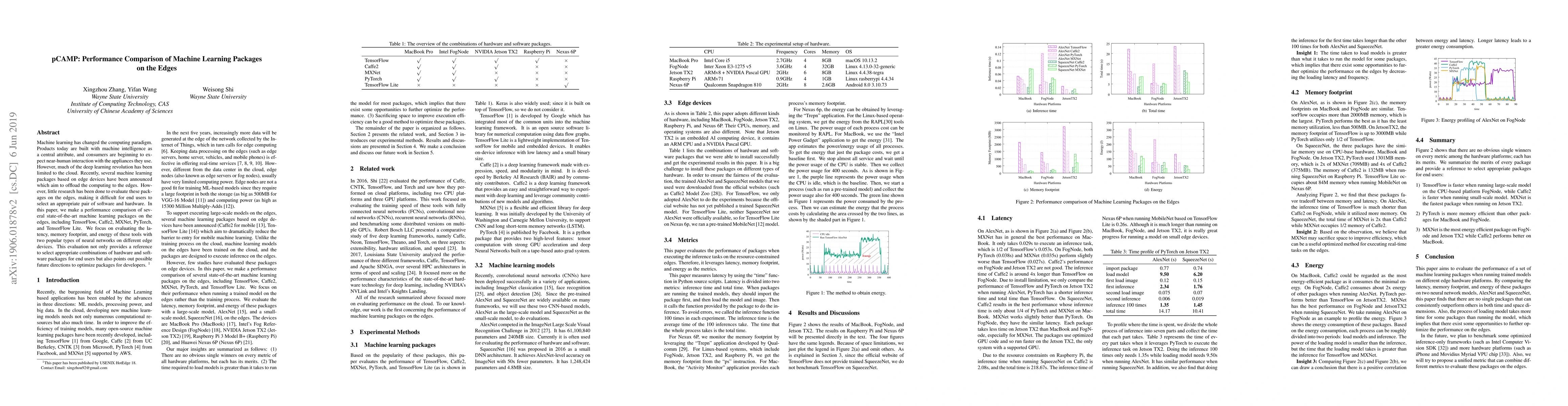 Machine learning has changed the computing paradigm. Products today are built with machine intelligence as a central attribute, and consumers are beginning to expect near-human interaction with the appliances they use. However, much of the deep learning revolution has been limited to the cloud. Recently, several machine learning packages based on edge devices have been announced which aim to offload the computing to the edges. However, little research has been done to evaluate these packages on the edges, making it difficult for end users to select an appropriate pair of software and hardware. In this paper, we make a performance comparison of several state-of-the-art machine learning packages on the edges, including TensorFlow, Caffe2, MXNet, PyTorch, and TensorFlow Lite. We focus on evaluating the latency, memory footprint, and energy of these tools with two popular types of neural networks on different edge devices. This evaluation not only provides a reference to select appropriate combinations of hardware and software packages for end users but also points out possible future directions to optimize packages for developers.