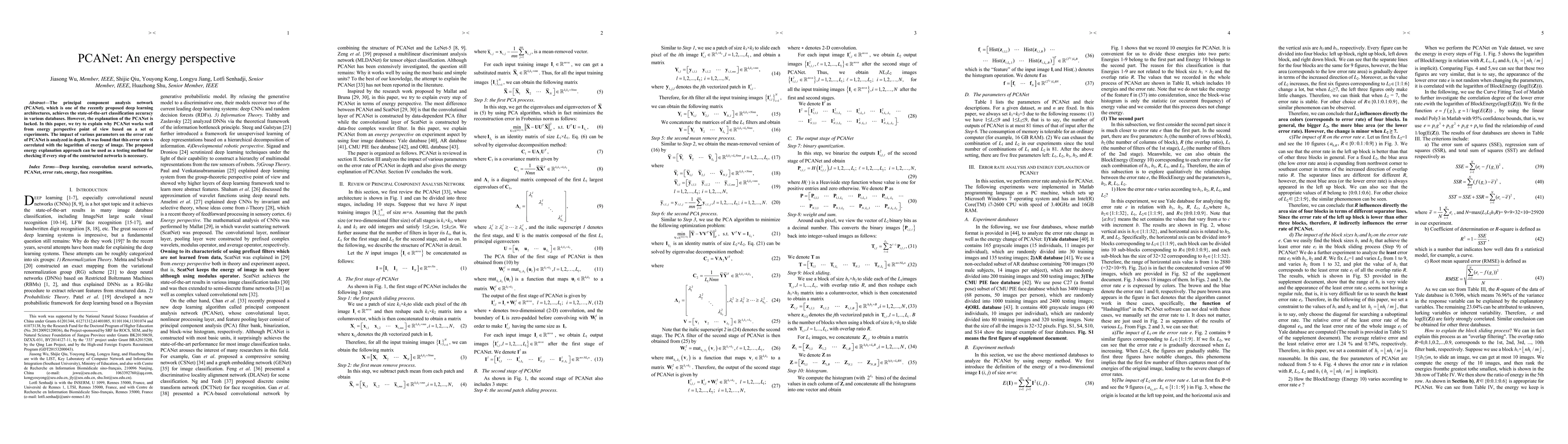 PCANet, a deep learning architecture, achieves high classification accuracy but lacks explanation. This paper explores PCANet's effectiveness from an energy perspective, finding that error rates correlate with the logarithm of image energy, offering a method to validate network construction steps.