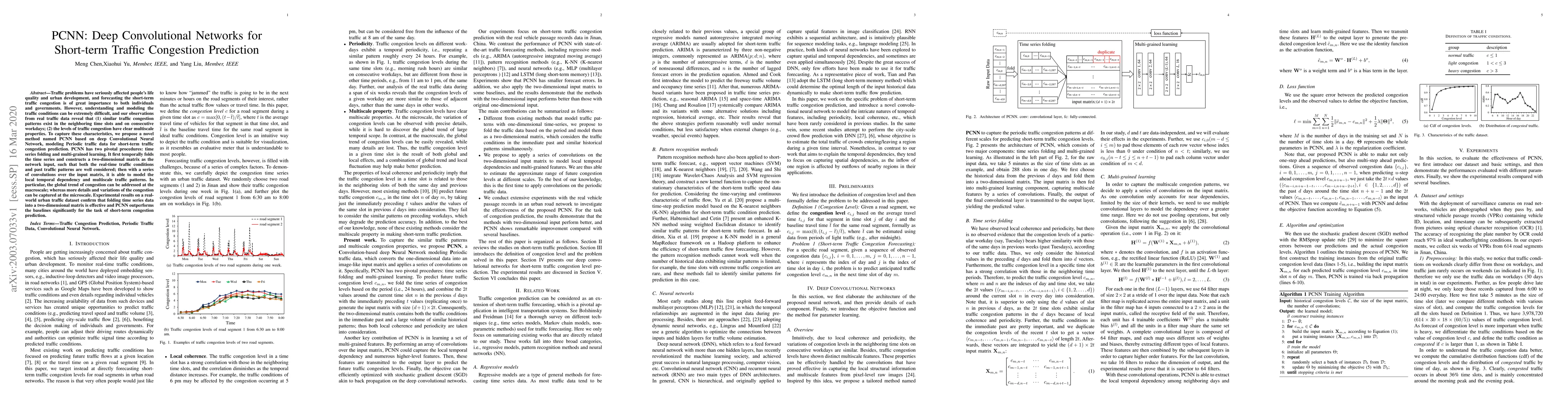The paper proposes PCNN, a deep Convolutional Neural Network for short-term traffic congestion prediction, leveraging time series folding and multi-grained learning to capture multiscale traffic patterns. Experimental results show PCNN significantly outperforms baselines on real-world urban traffic data.