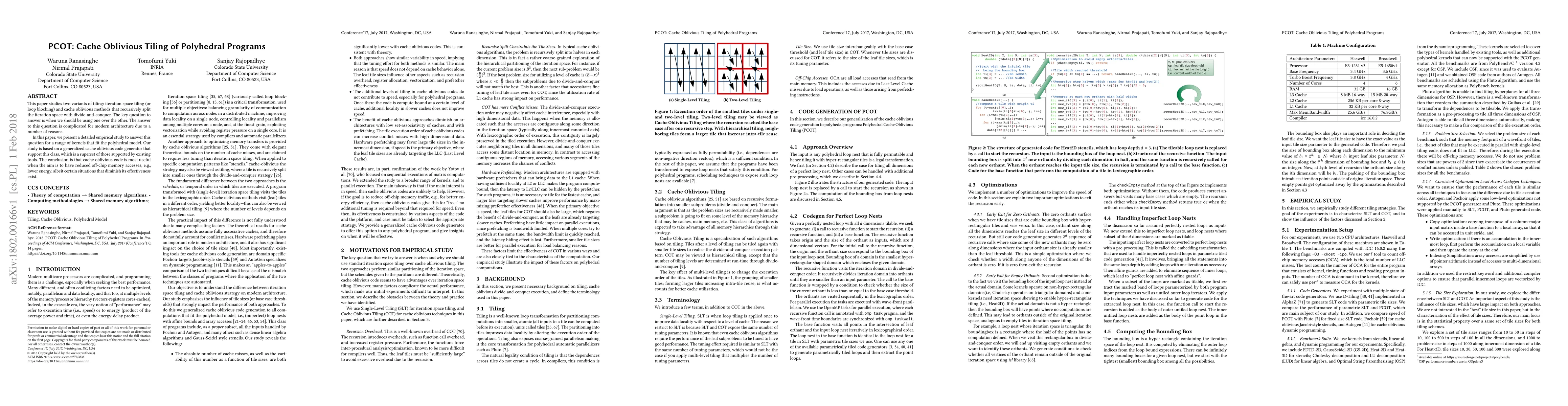 This paper studies two variants of tiling: iteration space tiling (or loop blocking) and cache-oblivious methods that recursively split the iteration space with divide-and-conquer. The key question to answer is when we should be using one over the other. The answer to this question is complicated for modern architecture due to a number of reasons. In this paper, we present a detailed empirical study to answer this question for a range of kernels that fit the polyhedral model. Our study is based on a generalized cache oblivious code generator that support this class, which is a superset of those supported by existing tools. The conclusion is that cache oblivious code is most useful when the aim is to have reduced off-chip memory accesses, e.g., lower energy, albeit certain situations that diminish its effectiveness exist.