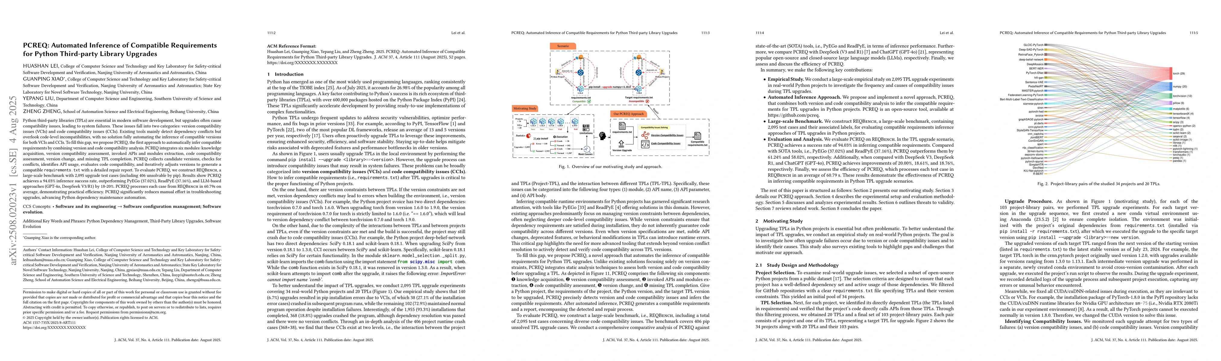 Python third-party libraries (TPLs) are essential in modern software development, but upgrades often cause compatibility issues, leading to system failures. These issues fall into two categories: version compatibility issues (VCIs) and code compatibility issues (CCIs). Existing tools mainly detect dependency conflicts but overlook code-level incompatibilities, with no solution fully automating the inference of compatible versions for both VCIs and CCIs. To fill this gap, we propose PCREQ, the first approach to automatically infer compatible requirements by combining version and code compatibility analysis. PCREQ integrates six modules: knowledge acquisition, version compatibility assessment, invoked APIs and modules extraction, code compatibility assessment, version change, and missing TPL completion. PCREQ collects candidate versions, checks for conflicts, identifies API usage, evaluates code compatibility, and iteratively adjusts versions to generate a compatible requirements.txt with a detailed repair report. To evaluate PCREQ, we construct REQBench, a large-scale benchmark with 2,095 upgrade test cases (including 406 unsolvable by pip). Results show PCREQ achieves a 94.03% inference success rate, outperforming PyEGo (37.02%), ReadPyE (37.16%), and LLM-based approaches (GPT-4o, DeepSeek V3/R1) by 18-20%. PCREQ processes each case from REQBench in 60.79s on average, demonstrating practical efficiency. PCREQ significantly reduces manual effort in troubleshooting upgrades, advancing Python dependency maintenance automation.