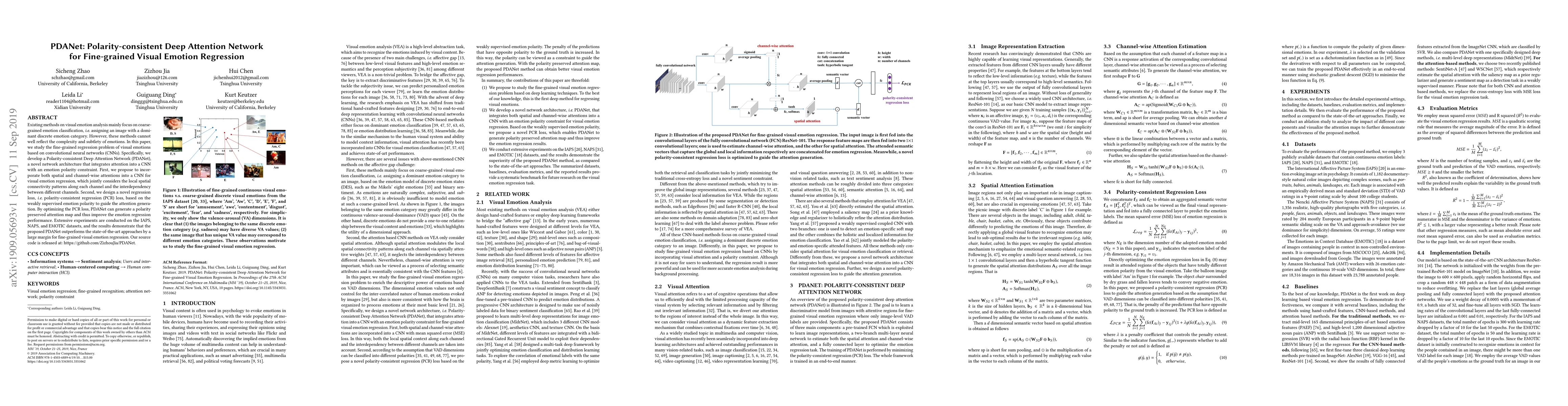 This paper proposes PDANet, a Polarity-consistent Deep Attention Network for fine-grained visual emotion regression, which uses both spatial and channel-wise attentions to capture complex emotional subtleties. The network incorporates a polarity-consistent regression loss to guide attention generation, achieving superior performance over existing methods on multiple datasets.