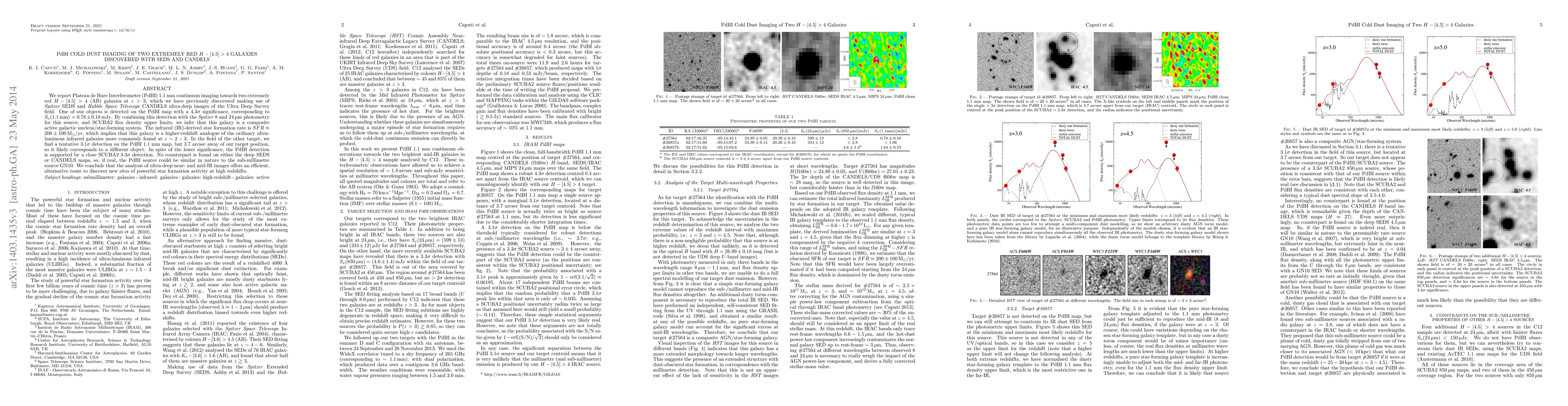 We report Plateau de Bure Interferometer (PdBI) 1.1 mm continuum imaging towards two extremely red H-[4.5]>4 (AB) galaxies at z>3, which we have previously discovered making use of Spitzer SEDS and Hubble Space Telescope CANDELS ultra-deep images of the Ultra Deep Survey field. One of our objects is detected on the PdBI map with a 4.3 sigma significance, corresponding to Snu(1.1mm)=(0.78 +/- 0.18) mJy. By combining this detection with the Spitzer 8 and 24 micron photometry for this source, and SCUBA2 flux density upper limits, we infer that this galaxy is a composite active galactic nucleus/star-forming system. The infrared (IR)-derived star formation rate is SFR~(200 +/- 100) Msun/yr, which implies that this galaxy is a higher-redshift analogue of the ordinary ultra-luminous infrared galaxies (ULIRGs) more commonly found at z~2-3. In the field of the other target, we find a tentative 3.1 sigma detection on the PdBI 1.1 mm map, but 3.7 arcsec away of our target position, so it likely corresponds to a different object. In spite of the lower significance, the PdBI detection is supported by a close SCUBA2 3.3 sigma detection. No counterpart is found on either the deep SEDS or CANDELS maps, so, if real, the PdBI source could be similar in nature to the sub-millimetre source GN10. We conclude that the analysis of ultra-deep near- and mid-IR images offers an efficient, alternative route to discover new sites of powerful star formation activity at high redshifts.