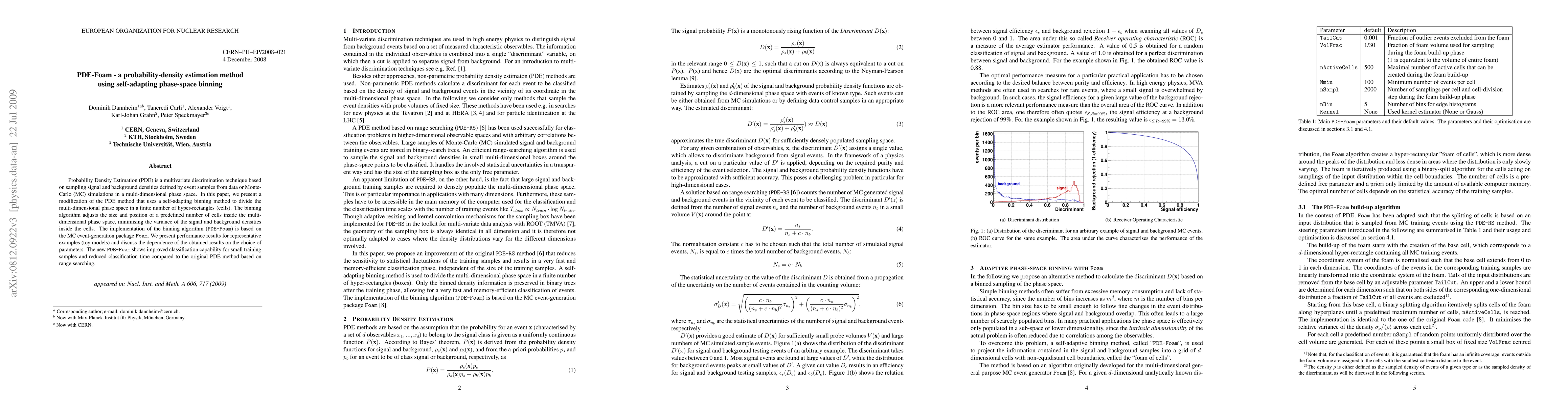This paper introduces PDE-Foam, a modified Probability Density Estimation (PDE) method that employs a self-adapting binning technique to optimize multi-dimensional phase space division. PDE-Foam enhances classification efficiency and accuracy, especially with limited training samples.