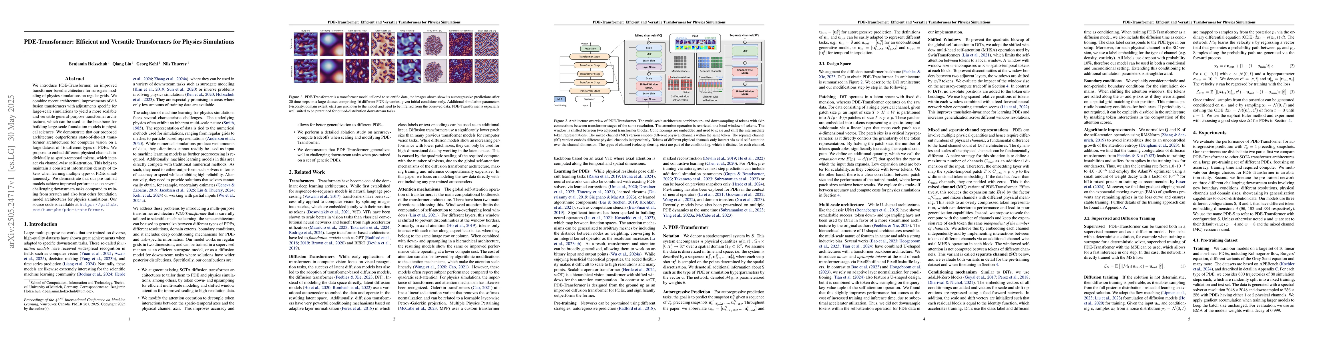 The PDE-Transformer architecture improves transformer-based models for physics simulations, outperforming state-of-the-art architectures on computer vision tasks with large-scale simulations.
