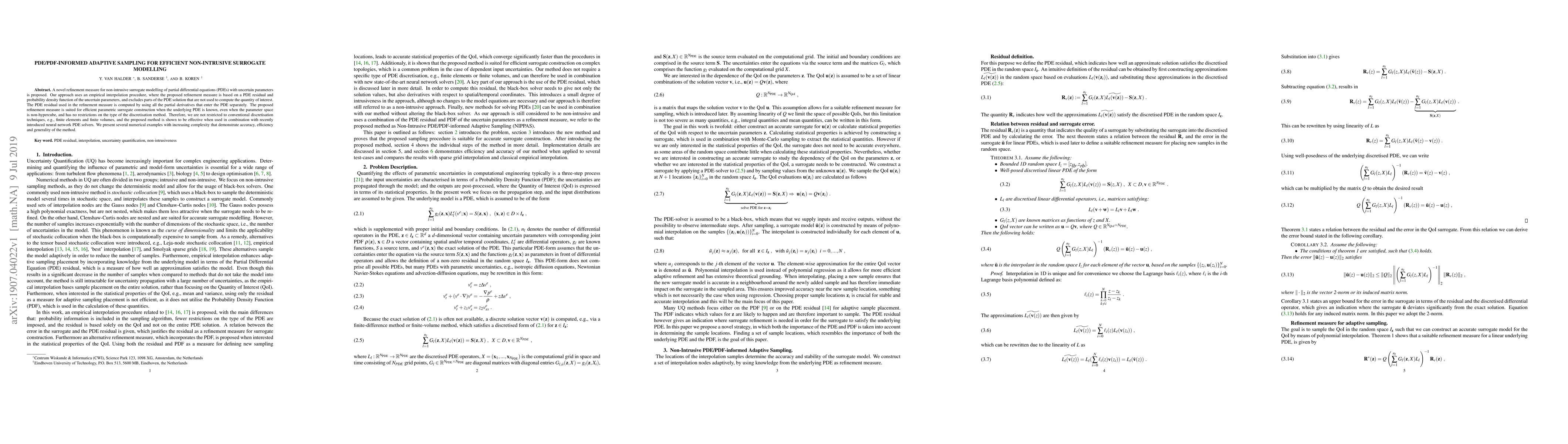 This paper proposes a novel adaptive sampling method for non-intrusive surrogate modelling of PDEs using uncertain parameters, employing a refinement measure based on PDE residuals and probability density functions. The method is shown to be efficient and effective for various discretisation techniques, including neural network solvers.
